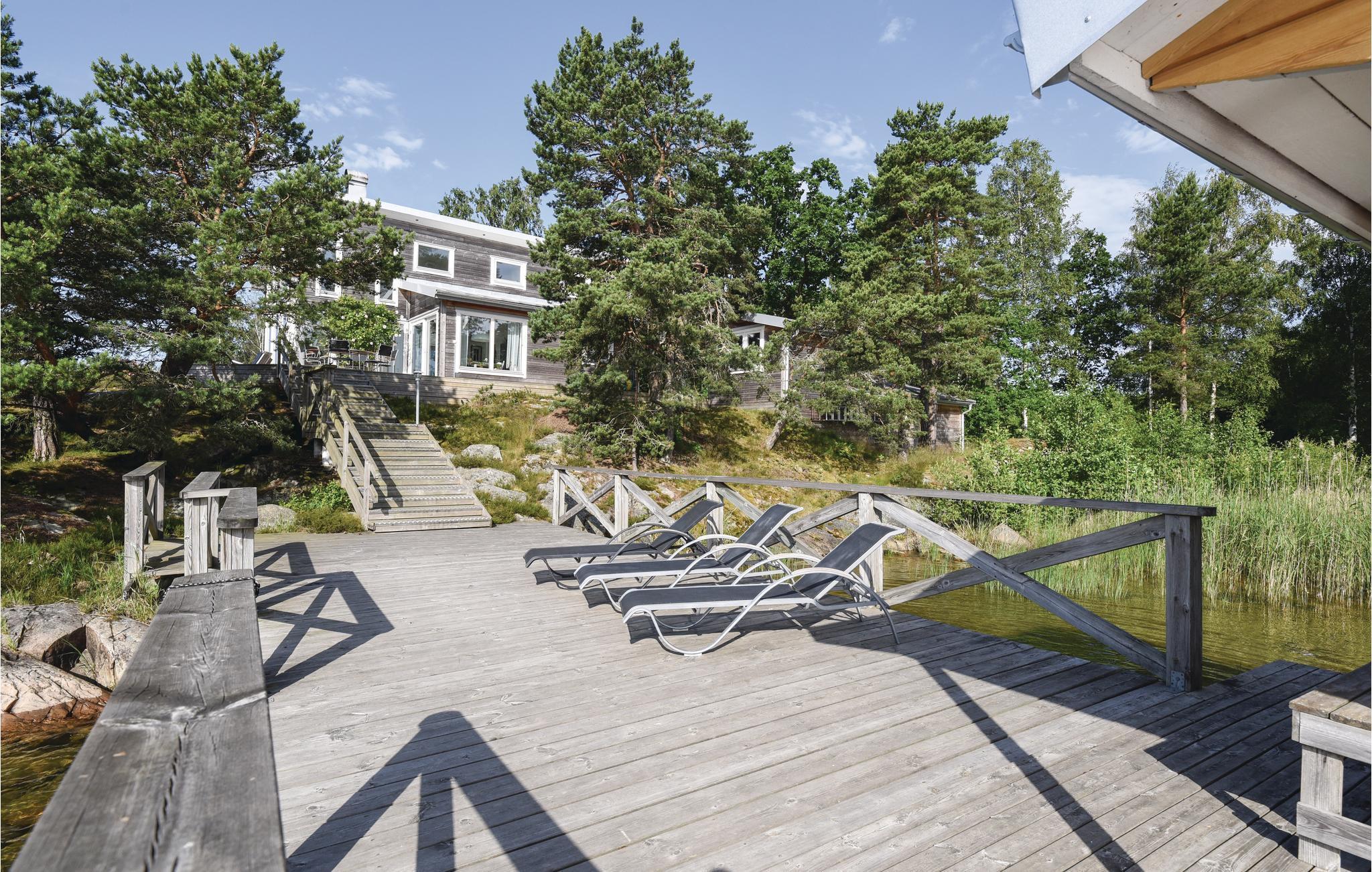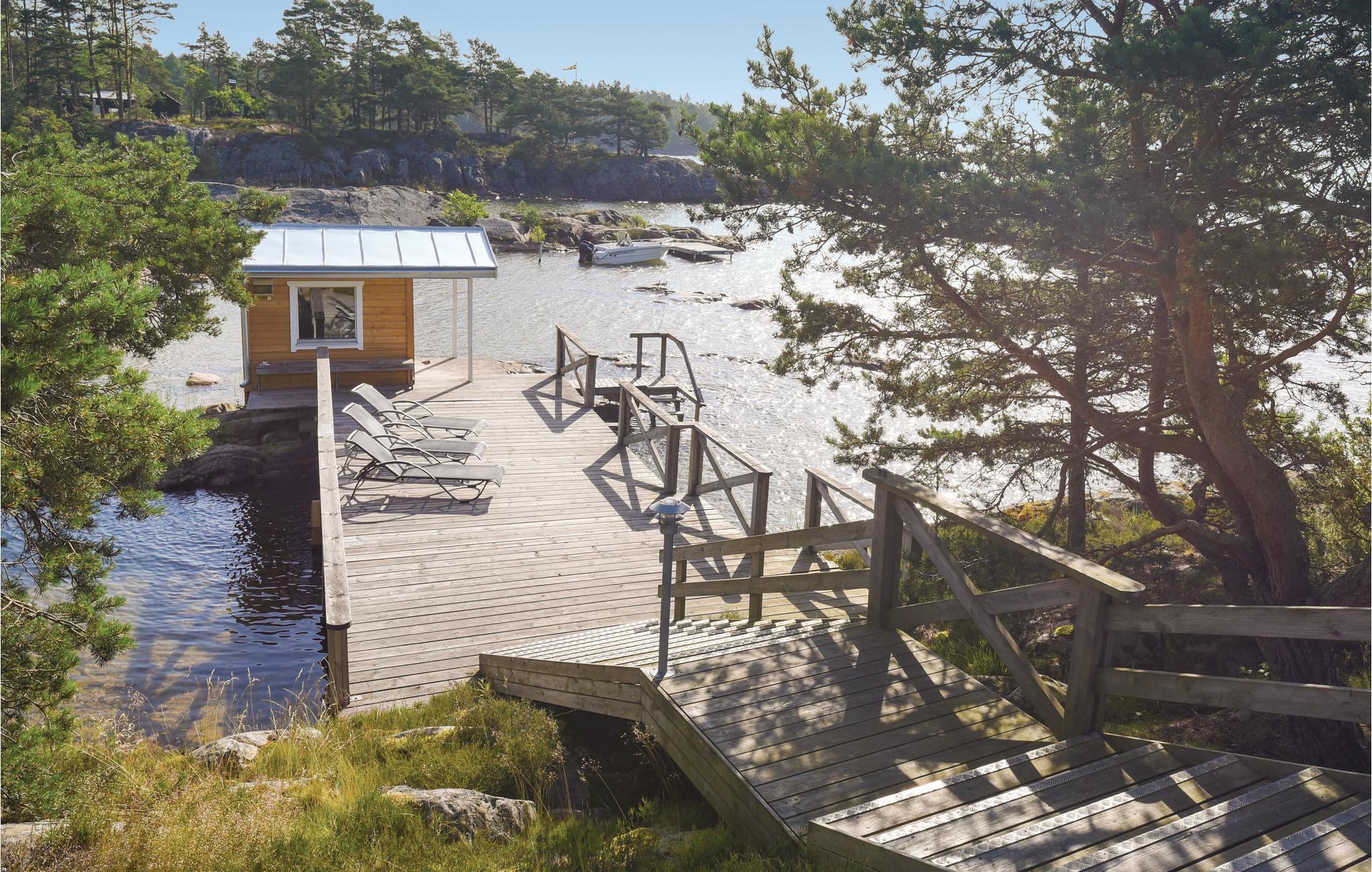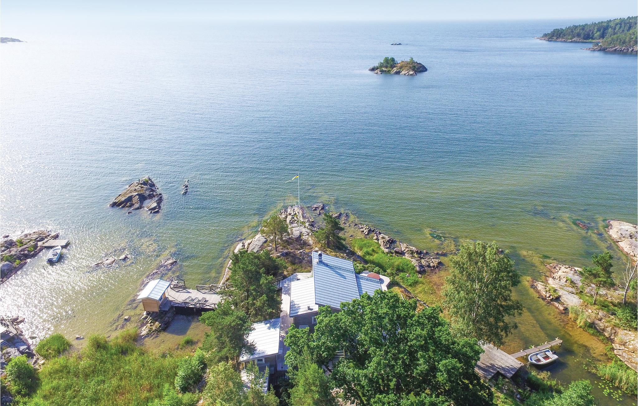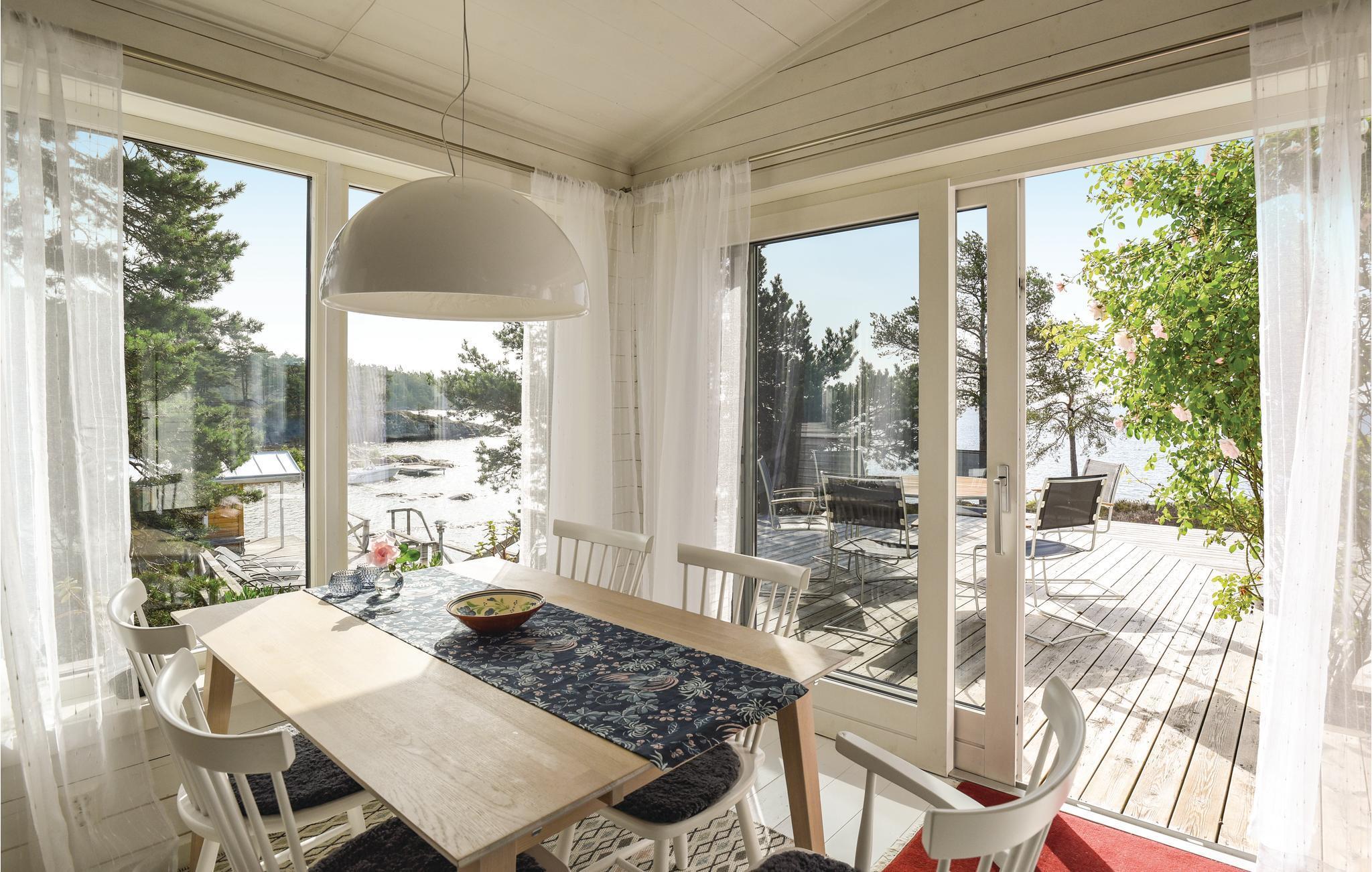 Ett semesterparadis för den kräsne. Den här arkitektritade villan ligger på spetsen av en udde i Vänern nära Mellerud och vid sjöns västra strand.
