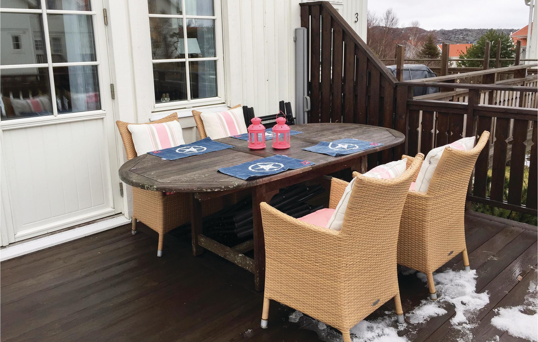 I sommaridyllen Mollösund ligger detta välutrustade radhus. Detta är ett semesterhus som är perfekt för en semester på den svenska västkusten året runt. Ta del av alla aktiviteter i skärgården på sommaren eller ta en paus för en stund och njut av avkopplande promenader på vintern. Den gamla fiskebyn Mollösund på Orusts sydvästra spets är ett populärt utflyktsmål. Med det här boendet har du goda alternativ om du också vill utforska andra platser i regionen. Ungefär 30 km från semesterhuset når du Henån, Orusts centralort.