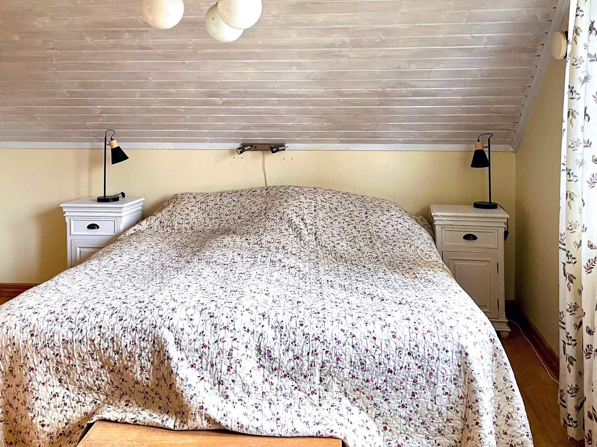 Detta hus har två våningar. På bottenvåningen välkomnas du av en rymlig hall med gott om plats att hänga av dig ytterkläderna. Till vänster om hallen kommer man in i det fullt utrustade köket med allt från kaffebryggare till diskmaskin. Ett stort skafferi som är fyllt med torrvaror för både bakning och matlagning. På samma plan finns ett helt nyrenoverat badrum med både dusch och badkar, samt ett praktiskt grovkök med tvättmaskin och torktumlare. Det stora rummet på bottenvåningen erbjuder en bekväm soffgrupp där du kan koppla av framför TV:n. Till vänster om detta rum finns ett av husets tre sovrum, komplett med en dubbelsäng (140cm).