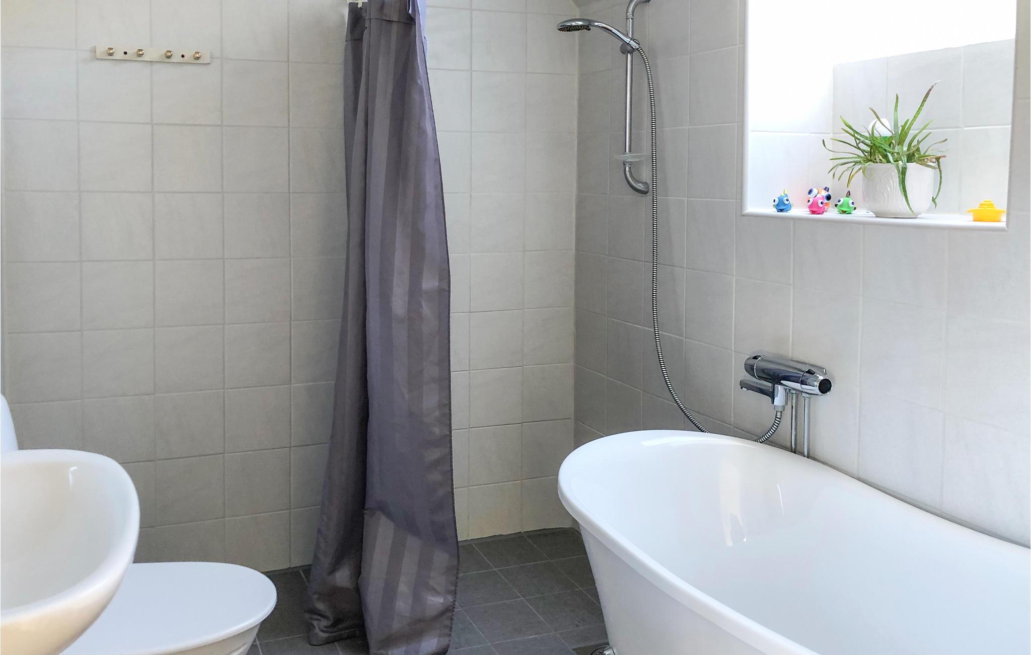 Badrum (nr. 2) - WC: Varmt och kallt vatten. Handdusch, badkar och dusch