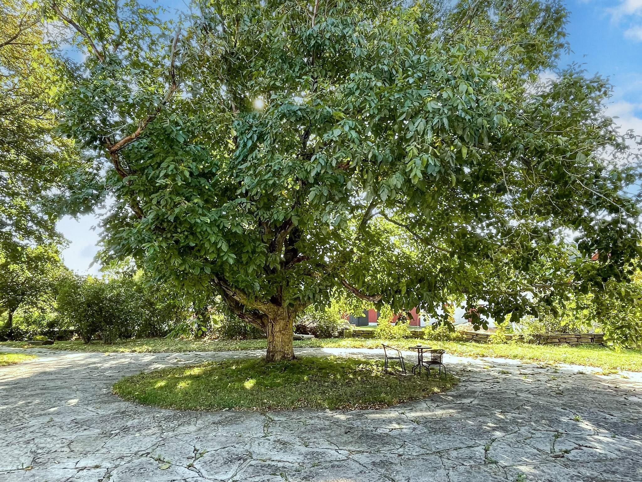 Framför huset finns utemöbler. Här kan ni njuta av den fina atmosfären med det vackra valnötsträdet i rundeln framför huset.