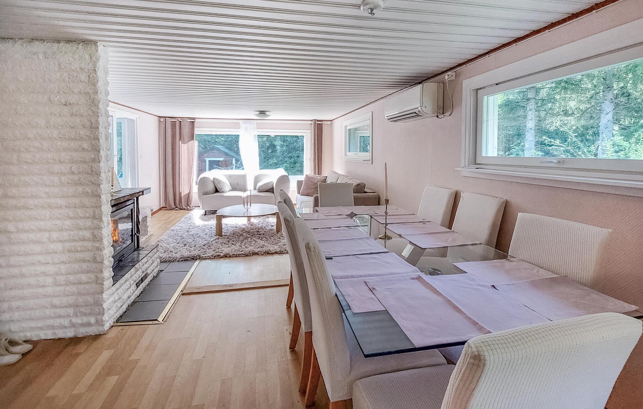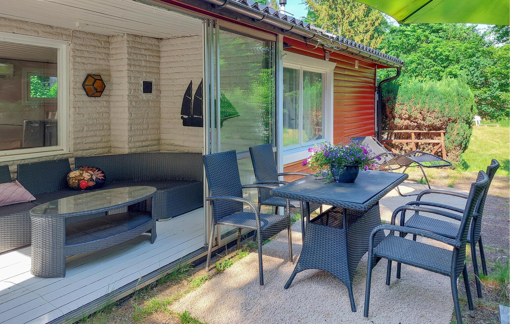 Ditt semesterhus ligger i omedelbar närhet av skogen och är omgivet av en stor tomt som är idealisk för barnfamiljer. Här hittar de små en lekstuga och gungor, medan vilda blåbär och hallon växer runt fastigheten och inbjuder dig att plocka dem. Den skyddade terrassen och det täckta utomhusområdet med bekväma möbler och en grill är idealiska för långa, avkopplande sommarkvällar. Här kan du njuta av lugnet och skönheten i omgivningarna efter en dag full av aktiviteter.