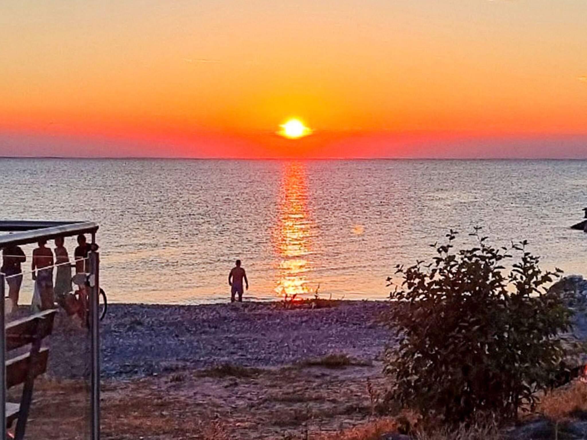 Ni har havsutsikt från hela huset, till och med i den trevliga bastun som har ett fönster mot Sandviks hamn. Trevlig, stor altan ut mot havet med utemöbler och grill där ni kan njuta. Här ser ni solen när den så vackert går ner i havet. Ni sover fint i en mindre dubbelsäng på 1,40 samt i en enkelbädd. Pentry med 2 kokplattor, micro, vattenkokare och kaffebryggare samt kyl med frysfack. Litet badrum med dusch och bastu.
