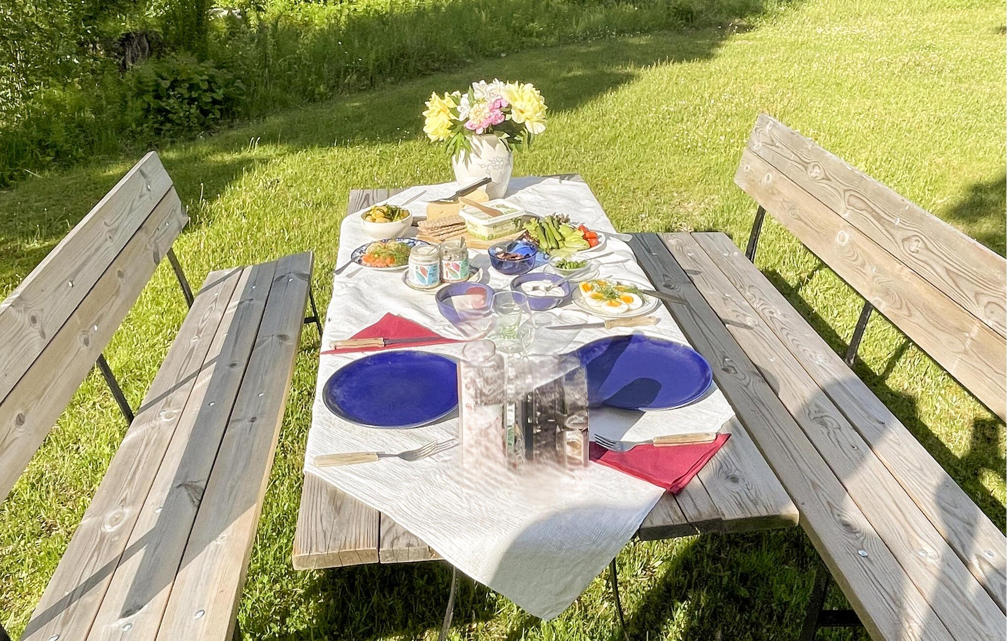 Den rymliga trädgården med direkt tillgång till en porlande bäck och lugnt vatten inbjuder till avkoppling och njutning.