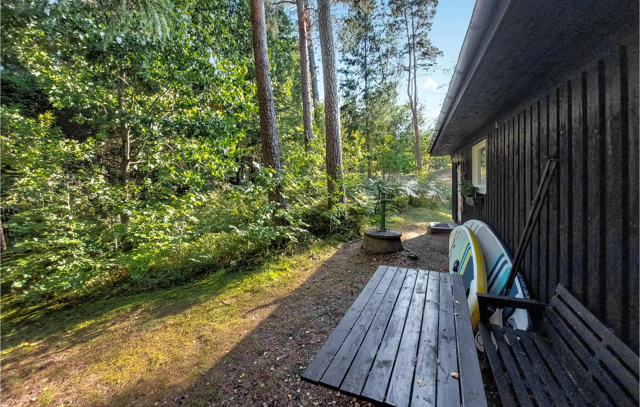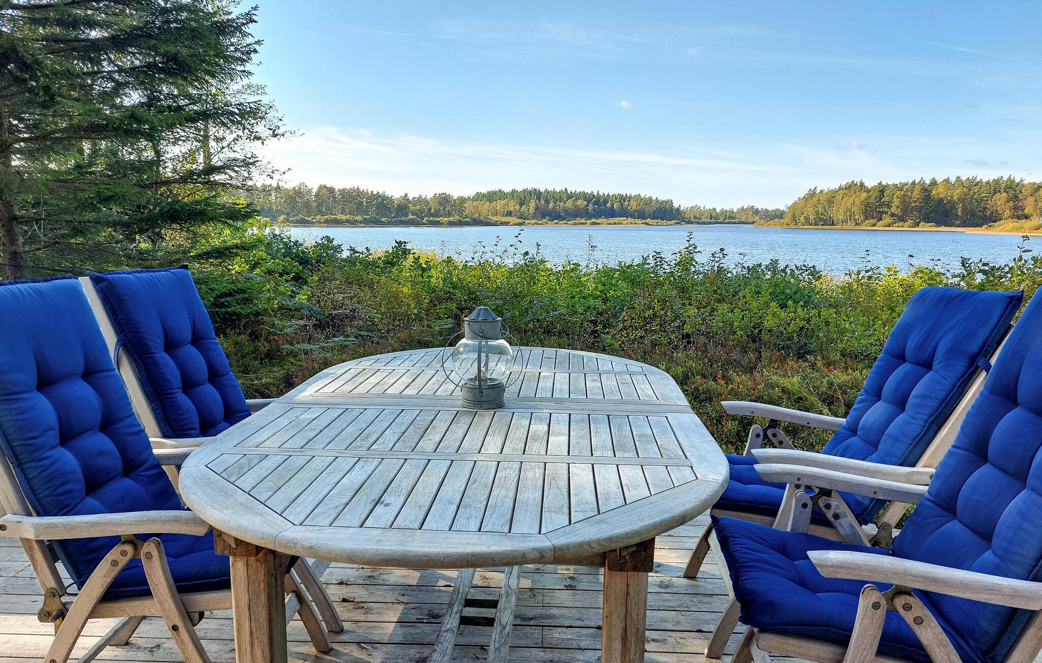 Detta semesterhus förtrollar med sitt vackra, skogsbeklädda läge vid den glittrande sjön. Det är den perfekta platsen för semesterfirare som älskar vattenaktiviteter och fiske, söker lugn och natur och värdesätter sin integritet. Så snart du kommer in känner du omedelbart den varma atmosfären i huset. Mysiga möbler, vackra panoramafönster, söt inredning och en öppen planlösning mellan kök och vardagsrum skapar en trevlig plats för umgänge. Familjetid är högsta prioritet här. Laga utsökta måltider tillsammans i köket, som ni sedan kan avnjuta i vardagsrummet med utsikt över sjön eller på den fantastiska terrassen. Drick ert första kaffe vid sjön och njut av lugnet och tystnaden. Njut av den vackraste solnedgången på kvällen. Dra nytta av husets läge och ge dig ut och fiska tidigt på morgonen eller ta en promenad till den närliggande stranden.