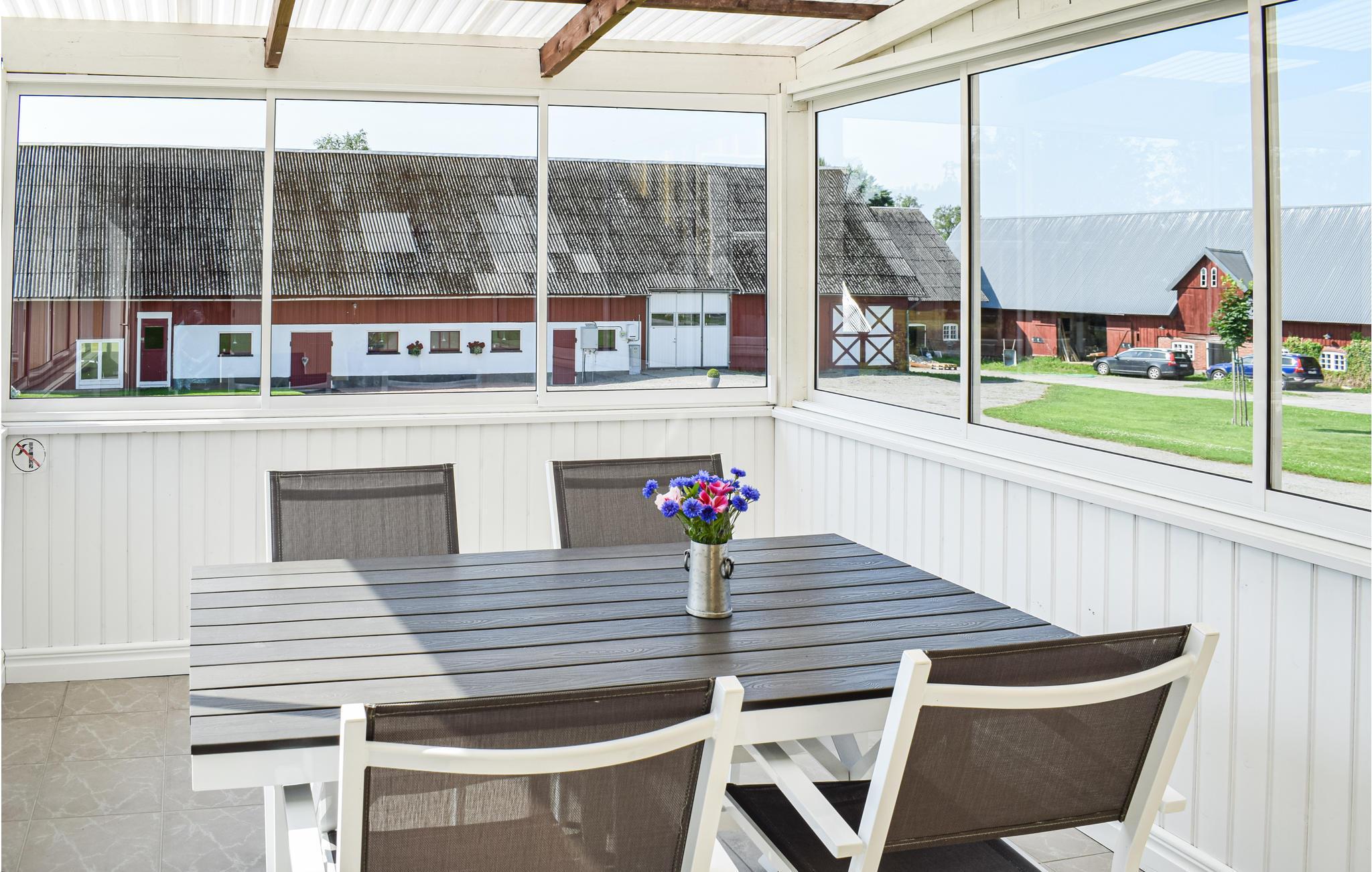 Mycket välskött semesterbostad på en gård i en riktig "Bullerby-miljö". Glasad vinterträdgård för mysiga sammankomster under de lite svalare kvällarna. Den sprakande öppna spisen i köket skapar en speciell atmosfär. Ved ingår. Du har en båt till ditt förfogande vid en vacker bad- och fiskesjö med gädda och abborre. Huset ligger bara 40 km från Isabergs berömda skidbackar och vilda västernstaden High Chaparral. Du kan också besöka Store Mosse nationalpark eller bada i Falkenberg eller Varberg. Handla i Ullared, Jönköping eller Värnamo.