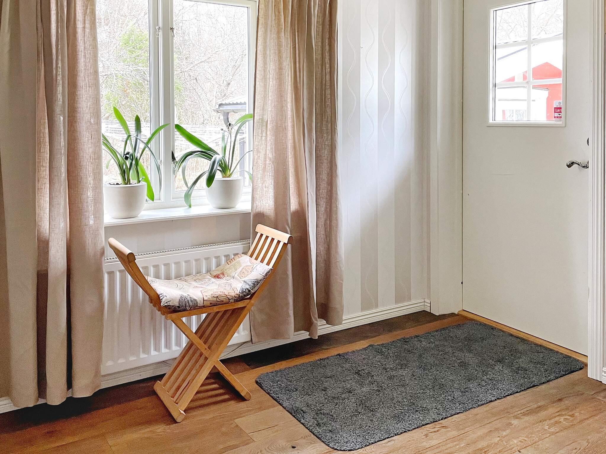 I huset bor ni på två plan varav entréplan välkomnar er med en rymlig hall som leder er till tvättstuga med tvättmaskin och torktumlare och vidare till badrummet med dusch, handfat och wc. Stort vardagsrum med härlig braskamin, tv-skärm som man kan koppla sin mobil eller dator till. Ljust och vackert kök med generösa arbetsytor och trevlig matplats. Mysigt sovloft där den stora murstocken skärmar av mellan bäddarna på ett praktiskt sätt. Här finns två sängplatser på ena sidan av murstocken och två sängplatser på den andra sidan murstocken. Den femte bädden består av en extra säng som enkelt kan fällas upp. Spjälsäng i trä finns även att låna.