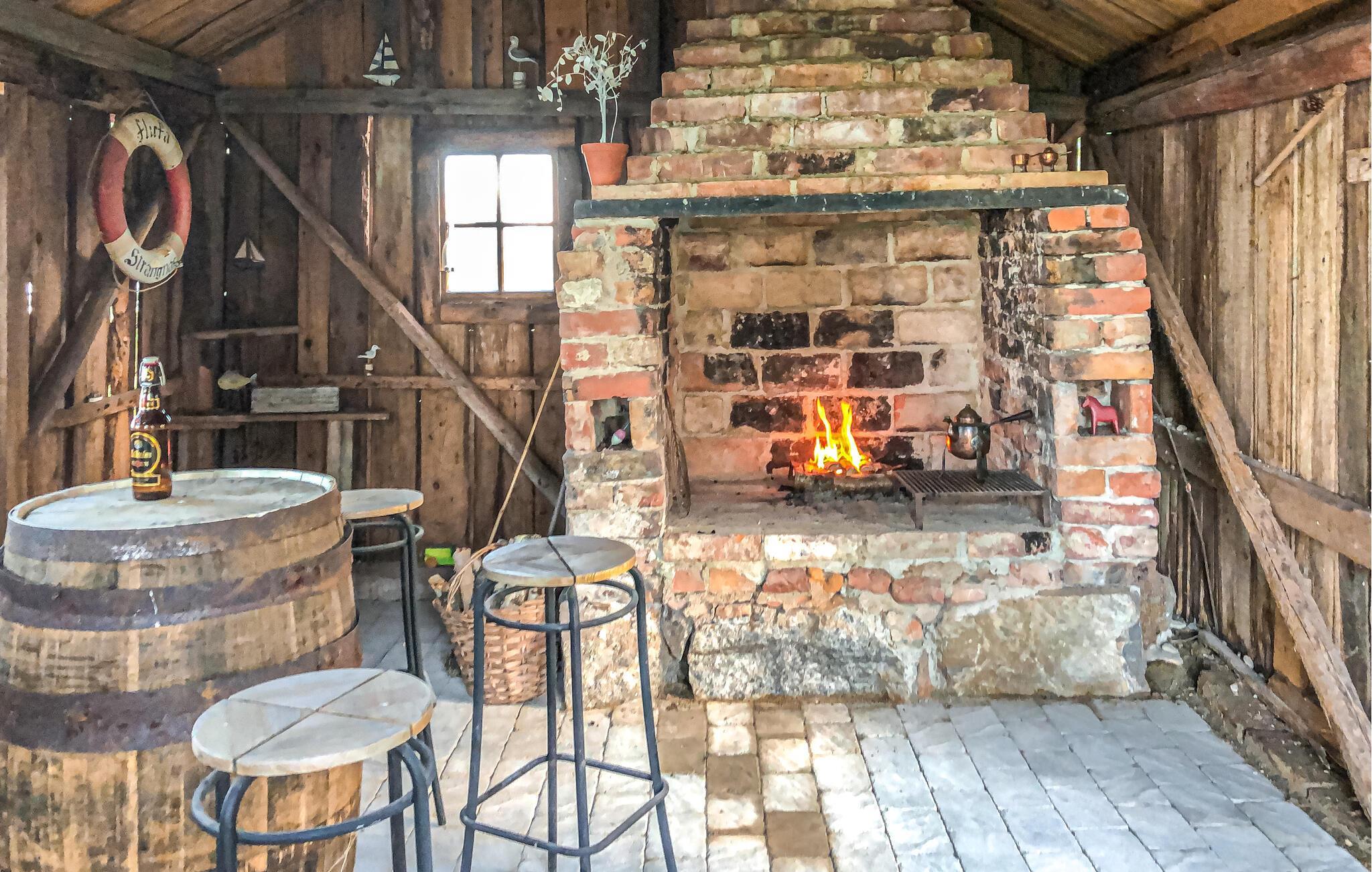 Den privata bryggan med badstege och roddbåt är perfekt för äventyr och fritt fiske på sjön. Eller hyr en motorbåt för längre utflykter. Kanoter, kajaker och SUPs finns tillgängliga i mån av tillgång. Kom samman i slutet av dagen vid den mysiga eldstaden precis vid stranden. Rymliga grönområden med fotbollsmål erbjuder utrymme för lek och spel. Tänd en brasa i den öppna spisen i den gamla smedjan och koppla av tillsammans i whiskey barrel bar.