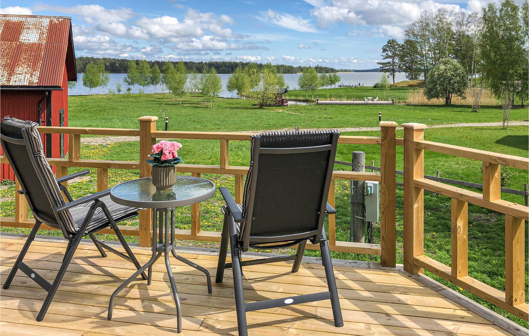 Det finns en väg som leder till huset. Ni bor på en vacker sjötomt vid Sveriges tredje största sjö, Mälaren, med goda fiskemöjligheter. En roddbåt ingår, en motor kan hyras. En motorbåt kan också hyras, flytvästar finns att hyra. En ramp finns för att lasta och hämta din egen båt med biltrailer. Du har tillgång till den gemensamma bastun och den vedeldade bubbelpoolen utomhus. Vid sjön finns en badbrygga med stege och en stor gräsmatta.