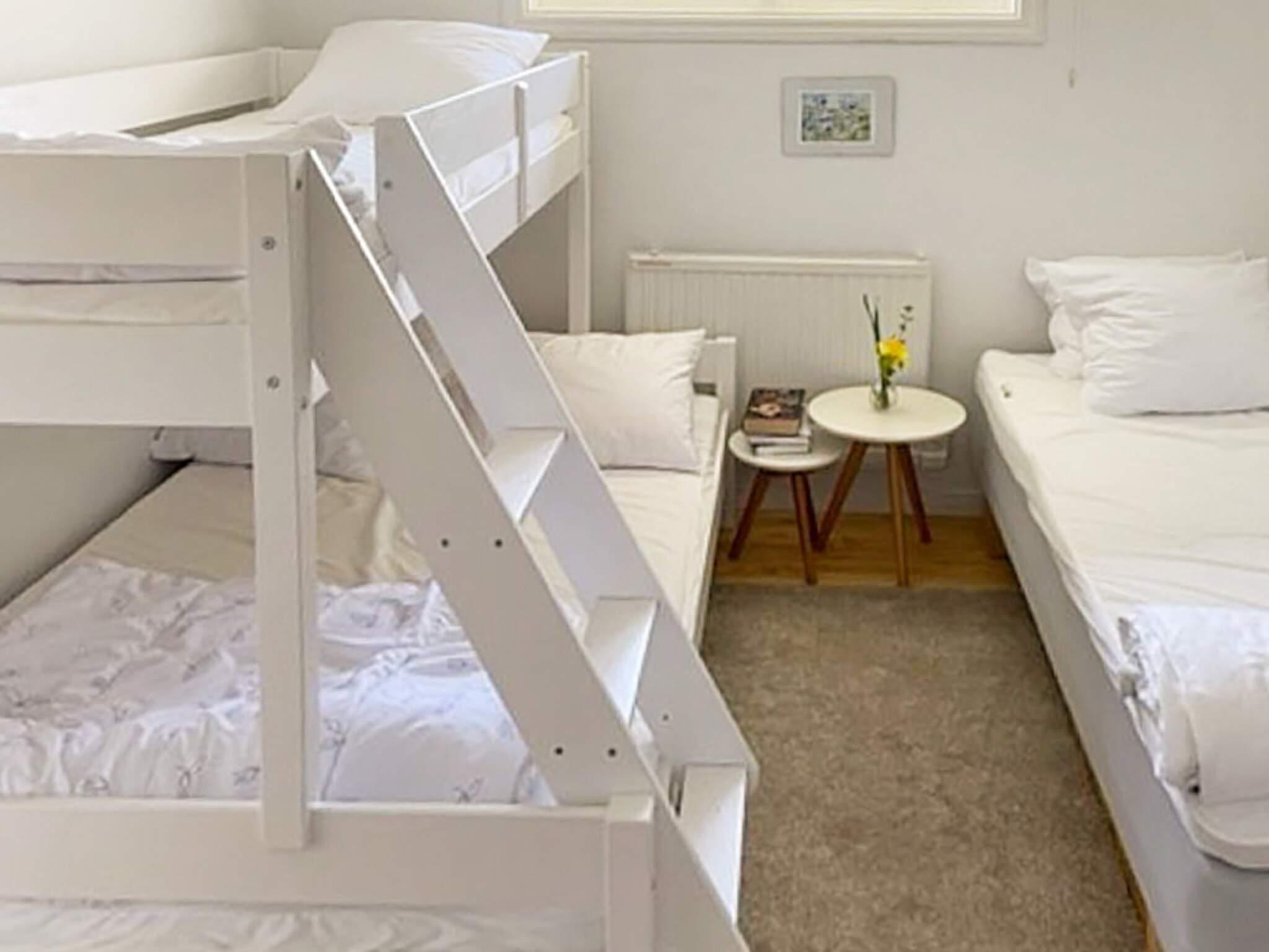 Stugan ligger på en högt belägen tomt som gör att man får en skön utsikt från terrassen. Tomten sluttar men det finns även en del av gräsmattan som lämpar sig väl för lek och spel. Ingång direkt från terrassen leder in i stugans allrum där köket ligger i öppen planlösning med matplats vid fönstret. En tv hörna med soffa och här finns även husets kamin som du med fördel tänder en brasa om kvällen är lite kylig. Det finns två sovrum och badrummet har en duschkabin samt tvättmaskin.