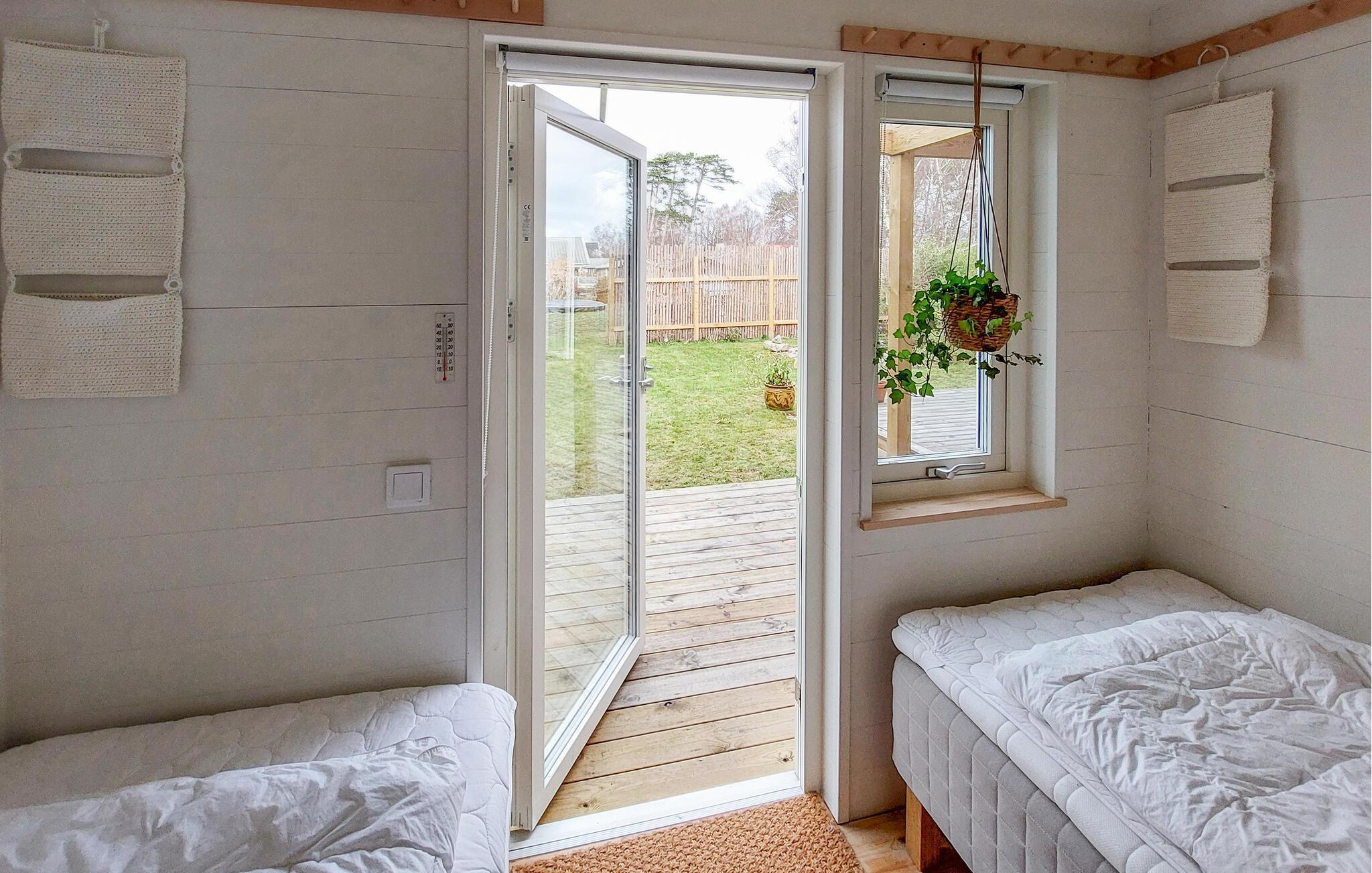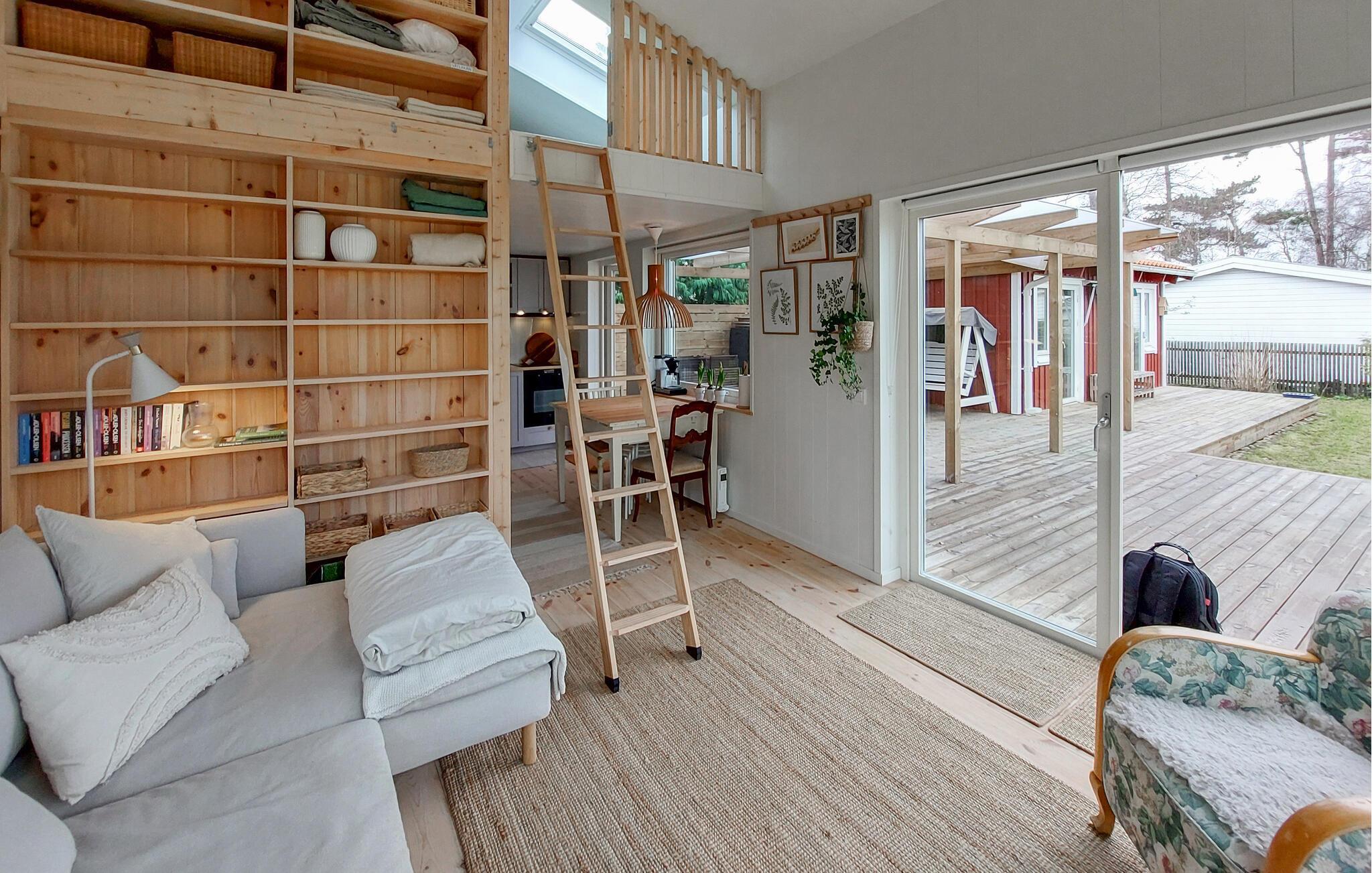 Njut av en avkopplande semester i detta semesterhus i Strandbaden nära Höganäs, som kombinerar skandinavisk stil och modern komfort. Det ljusa, luftiga vardagsrummet med sina stora fönster erbjuder dig en underbar utsikt över den kärleksfullt utformade trädgården. Slå dig ner i den mysiga soffan eller upptäck det bekväma sovloftet, som är perfekt för lugna timmar med läsning. Trädetaljerna och den öppna planlösningen skapar en varm och inbjudande atmosfär. Förbered dina måltider i köket och njut av dina måltider med utsikt över terrassen eller ät ute under pergolan.
