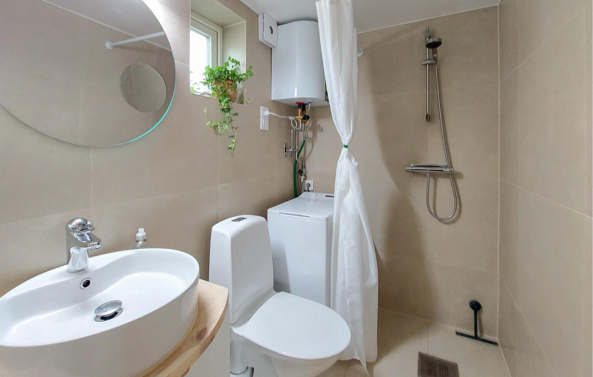 Badrum (nr. 1) - WC: Varmt och kallt vatten. Dusch