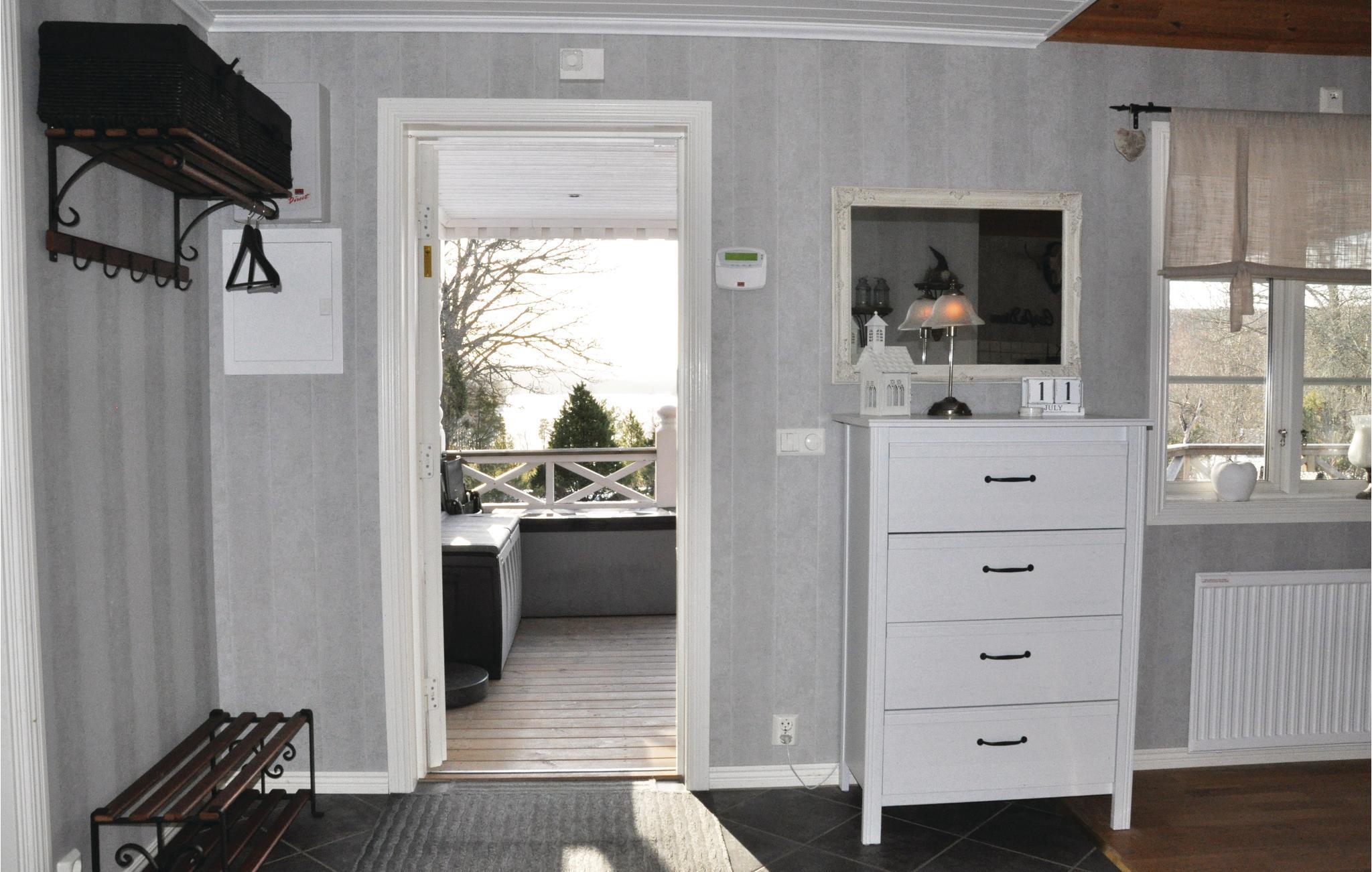 Här bor du med en mycket fin utsikt och bara 250 meter från sjön, där roddbåten och sandstranden väntar på dig. Semesterhuset har en bra standard och en stor terrass. Huset byggdes 2006 och har en öppen planlösning, en stor TV-skärm, Wi-Fi, tvättmaskin, torktumlare och en sandlåda för barn att leka i. Fastighetens strand är långgrund och mycket trevlig för hela familjen. I det här boendet kan du fiska och hitta vackra, ostörda platser.