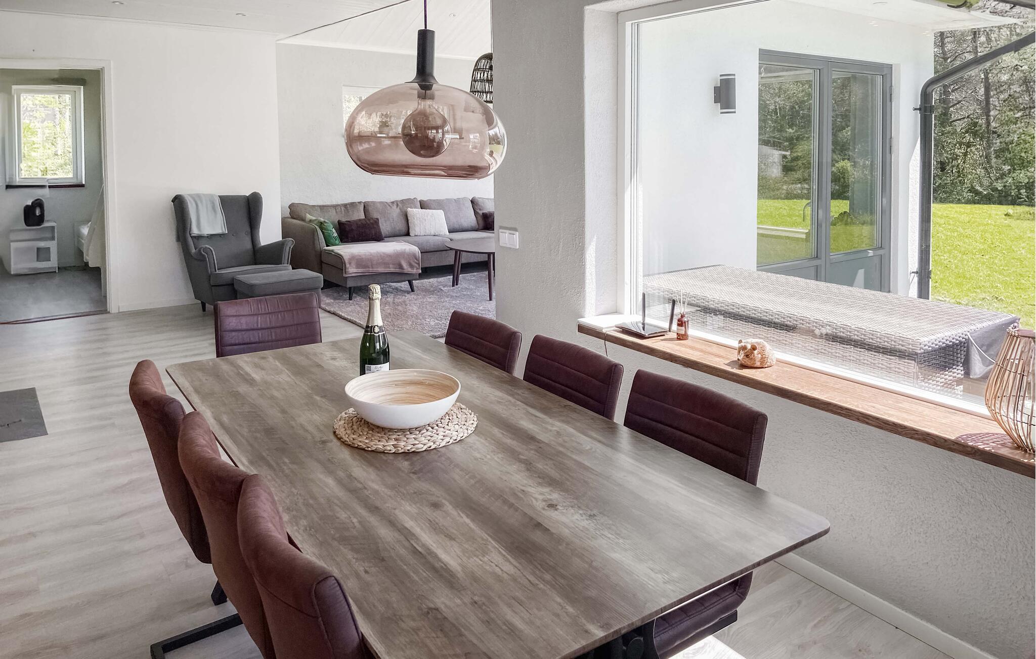 Detta vackra semesterhus väntar på dig i ett idylliskt läge i utkanten av skogen och är mycket lämpligt för en familjesemester. Den moderna inredningen ser till att du kan koppla av här i en elegant miljö och erbjuder några speciella extrafunktioner, till exempel vinkylen, som håller rosévinet kallt under varma sommardagar. Efter en händelserik dag kan du göra det bekvämt för dig i vardagsrummet, lyssna på det mysiga knastret från lågorna i den öppna spisen och göra upp planer för nästa dag.