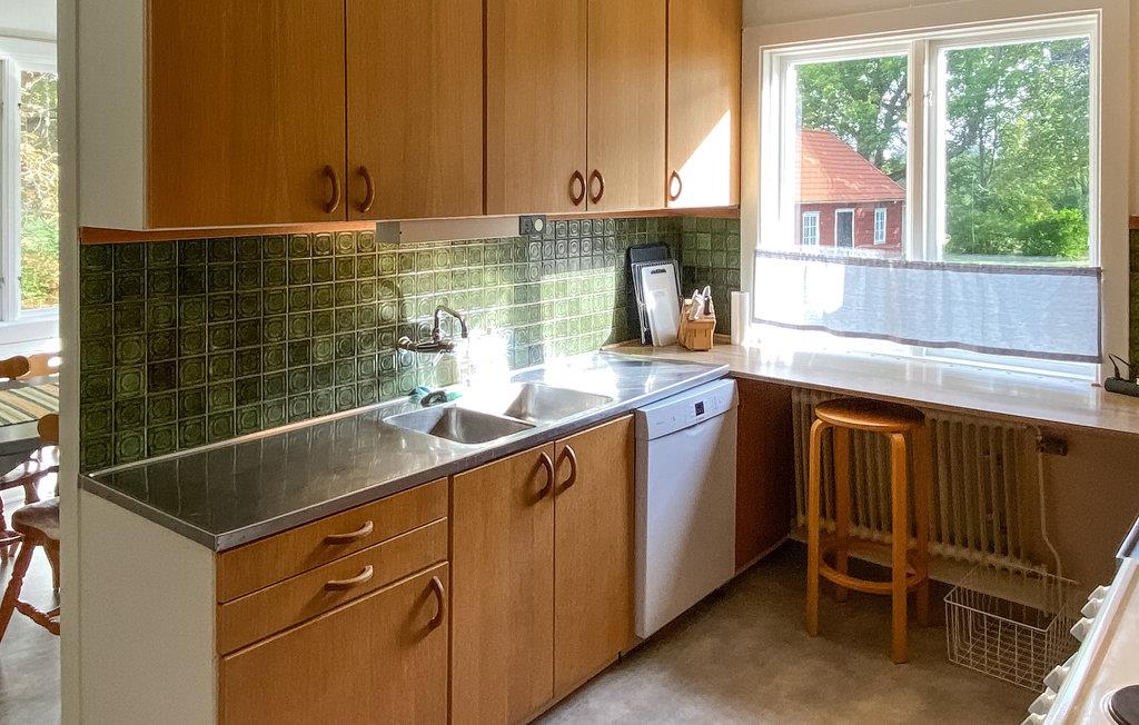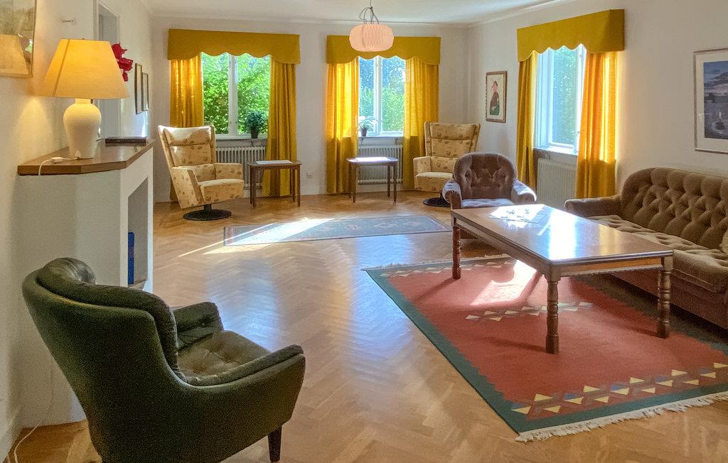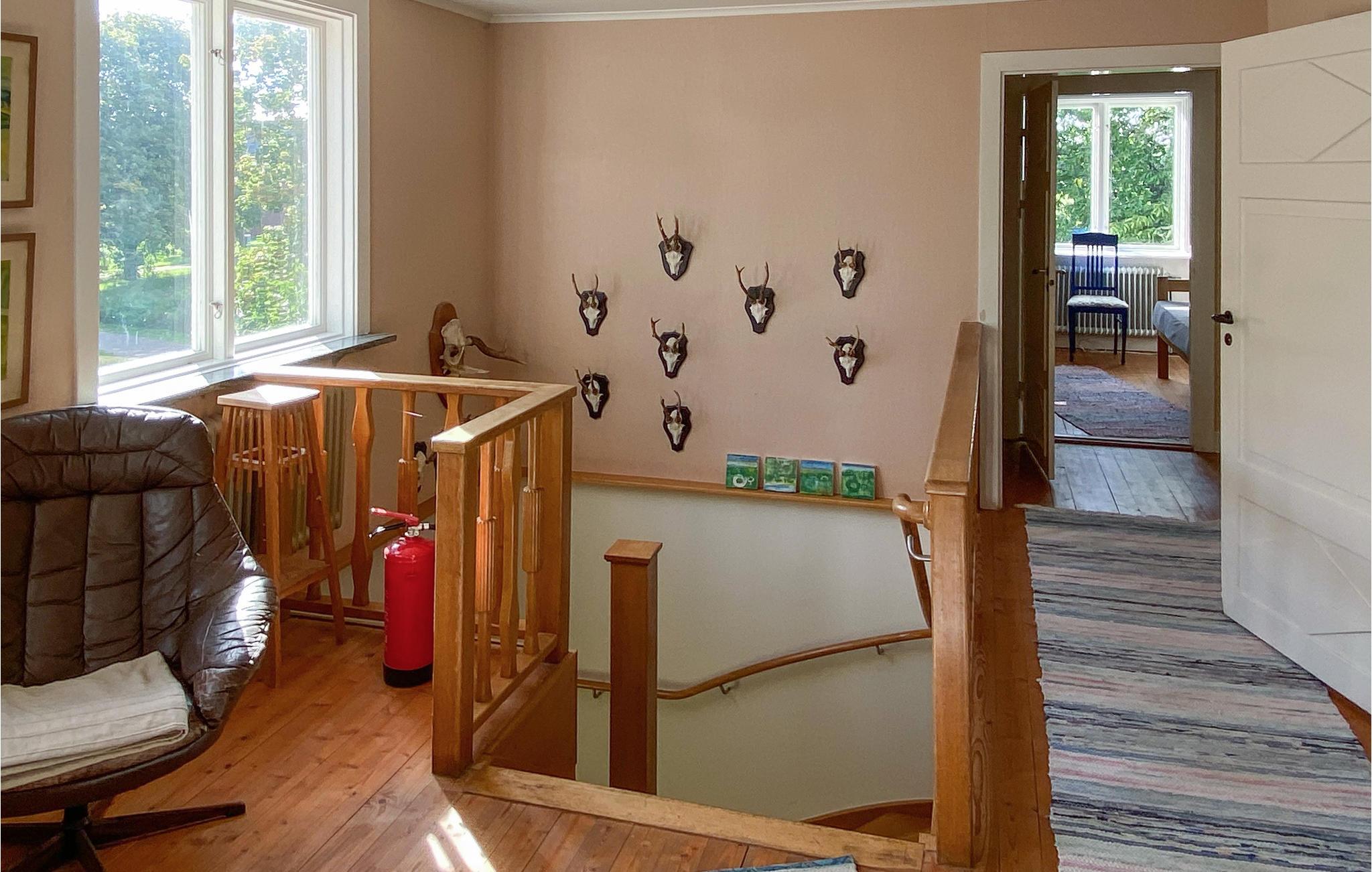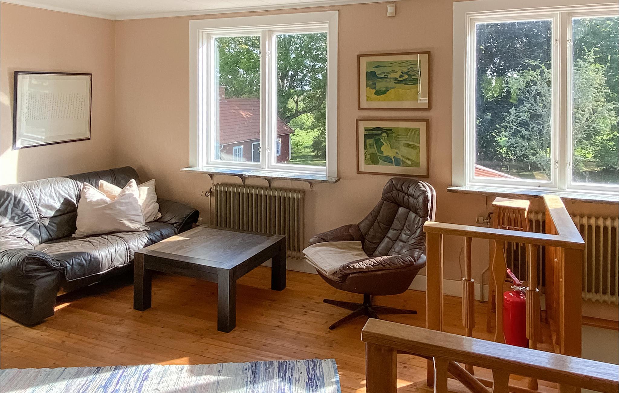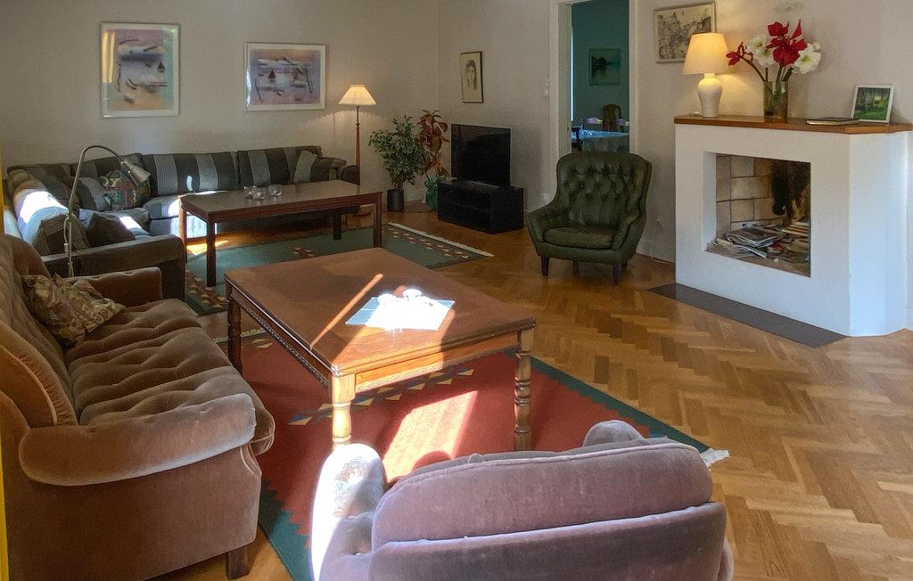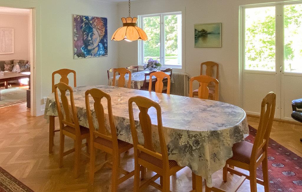 Njut av en härlig vistelse med storfamiljen eller familjens vänner i detta stora och trevliga semesterhus. De två vardagsrummen kan bli de centrala mötesplatserna för din familj, där du kan njuta av att umgås över goda samtal och kortspel. I övrigt finner ni enkel komfort och allt ni behöver för en bekymmersfri semester. Njut av ditt morgonkaffe på entréverandan och se dina barn leka på gräsmattan.