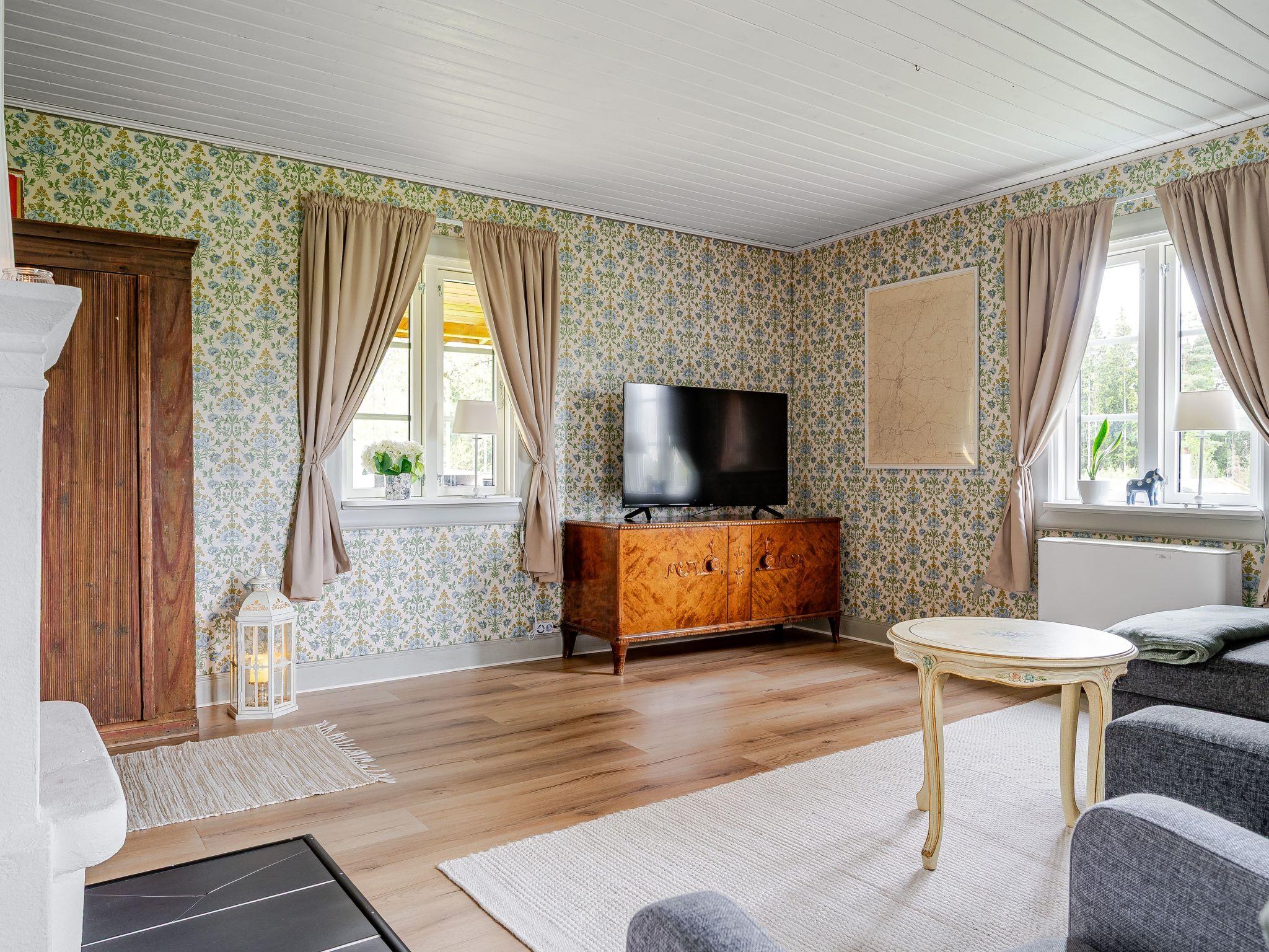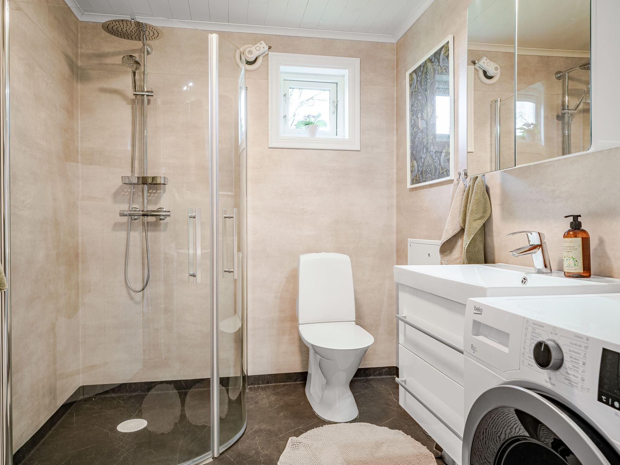 "Lövåsen", 2-room house 80 m2. Beautiful and cosy furnishings: living/sleeping room with 1 sofabed and open-hearth fireplace (only for decoration), TV. Open kitchen (oven, dishwasher, 3 ceramic glass hob hotplates, toaster, kettle, microwave, freezer, electric coffee machine) with Scandinavian wood stove (only for decoration), dining table. Shower/WC. Heating. Upper floor: 1 room with 1 bed and 1 double bed. Wooden floors. Terrace furniture, barbecue. Facilities: washing machine, dryer. Please note: non-smoking house. Smoke alarm.