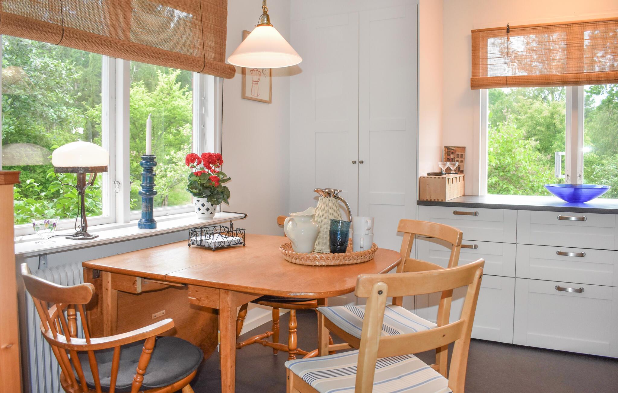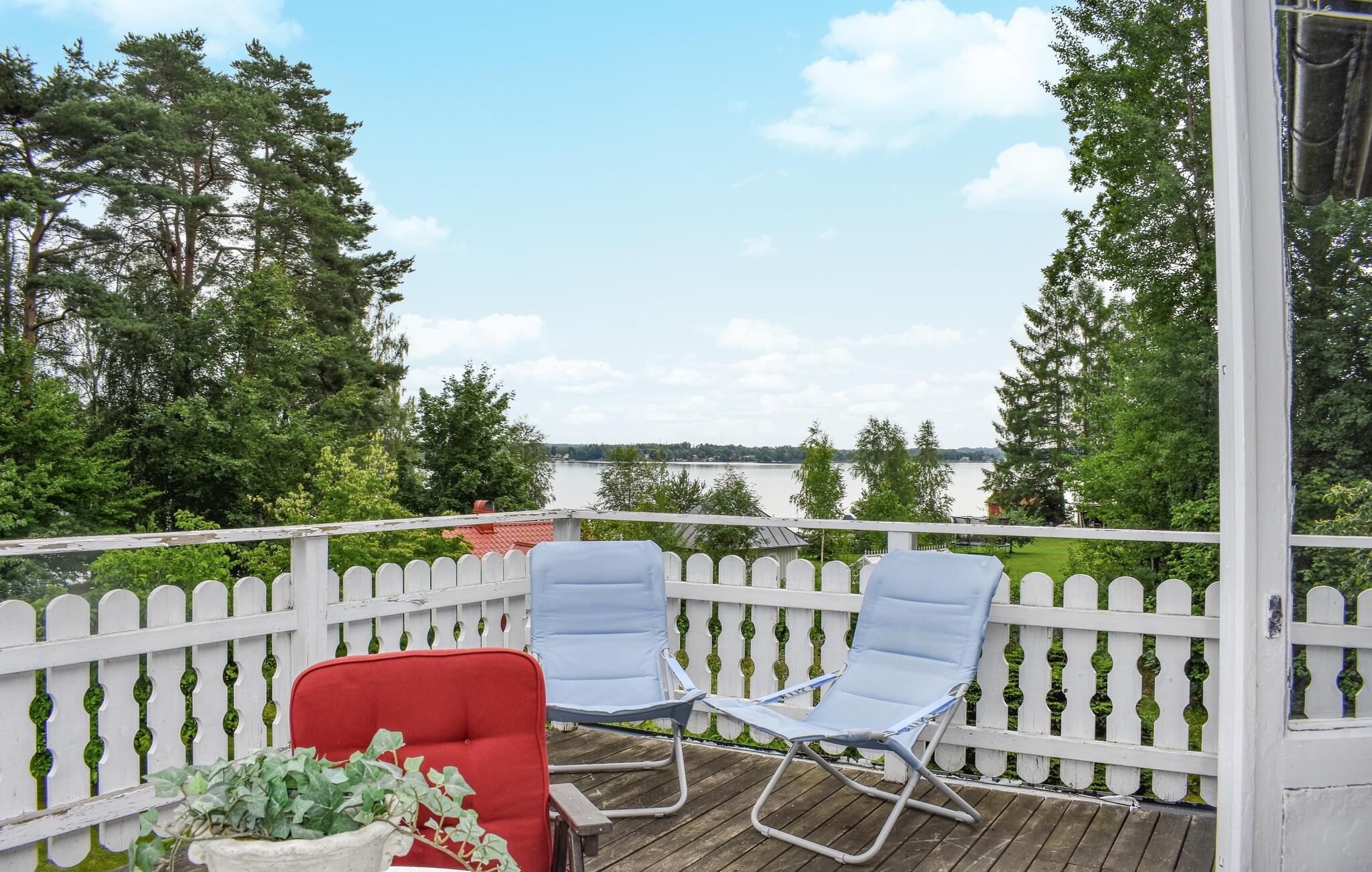 Njut av din vistelse i detta vackra semesterhus med en stor balkong med en hisnande utsikt över Helgasjön och de gröna omgivningarna.