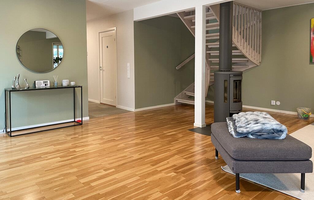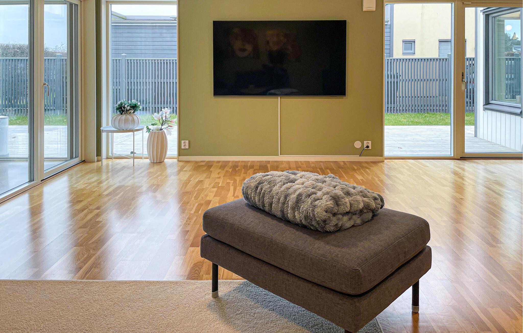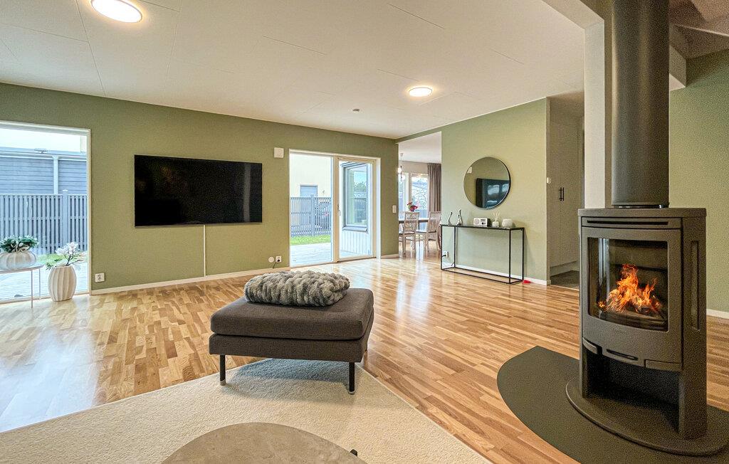 Välkommen till detta hus, som bara ligger en kort promenad från stranden och erbjuder gott om plats för en varierad semester med hela familjen. Börja dagen med en härlig frukost framför de stora fönstren. Se fram emot mysiga kvällar i soffan, där ni kan sitta tillsammans, streama er favoritfilm och lyssna på de sprakande lågorna i den vedeldade kaminen, eller koppla av i bubbelpoolen.
