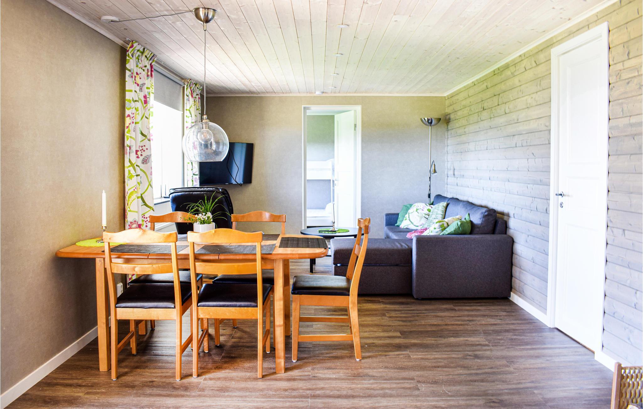 Både från lägenheten och från terrassen har du en vacker utsikt över sjön här. Inne i lägenheten väntar ett öppet kök och vardagsrum på dig, liksom ett stort badrum och ett sovrum. Lägenhetens bastu inbjuder till en runda välbefinnande efter en lång och aktiv semesterdag.