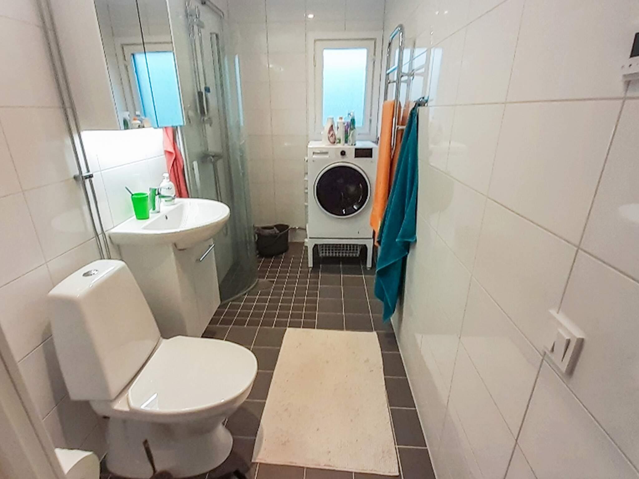 Bad/WC: Tvättmaskin, wc, tvättställ, dusch