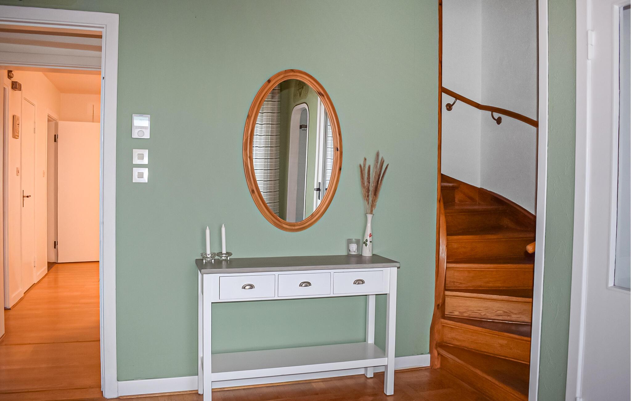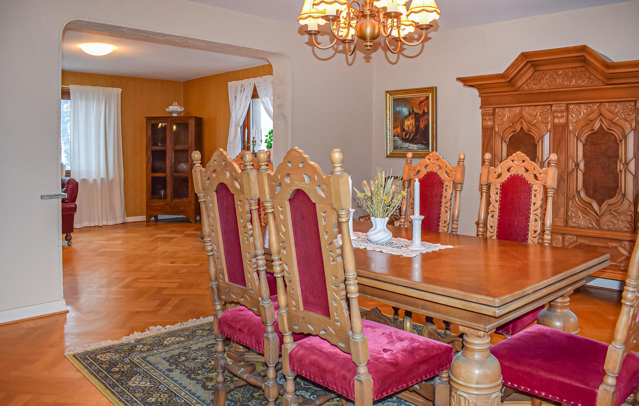 Detta hus välkomnar dig med en elegant atmosfär, där klassiska möbler och rymliga rum förmedlar en känsla av lugn och stabilitet. Njut av avkopplande timmar med kaffedrickning vid fönstret medan dagsljuset flödar in i rummen. Tillbringa mysiga kvällar med att titta på film och laga utsökta måltider för familj och vänner i köket.