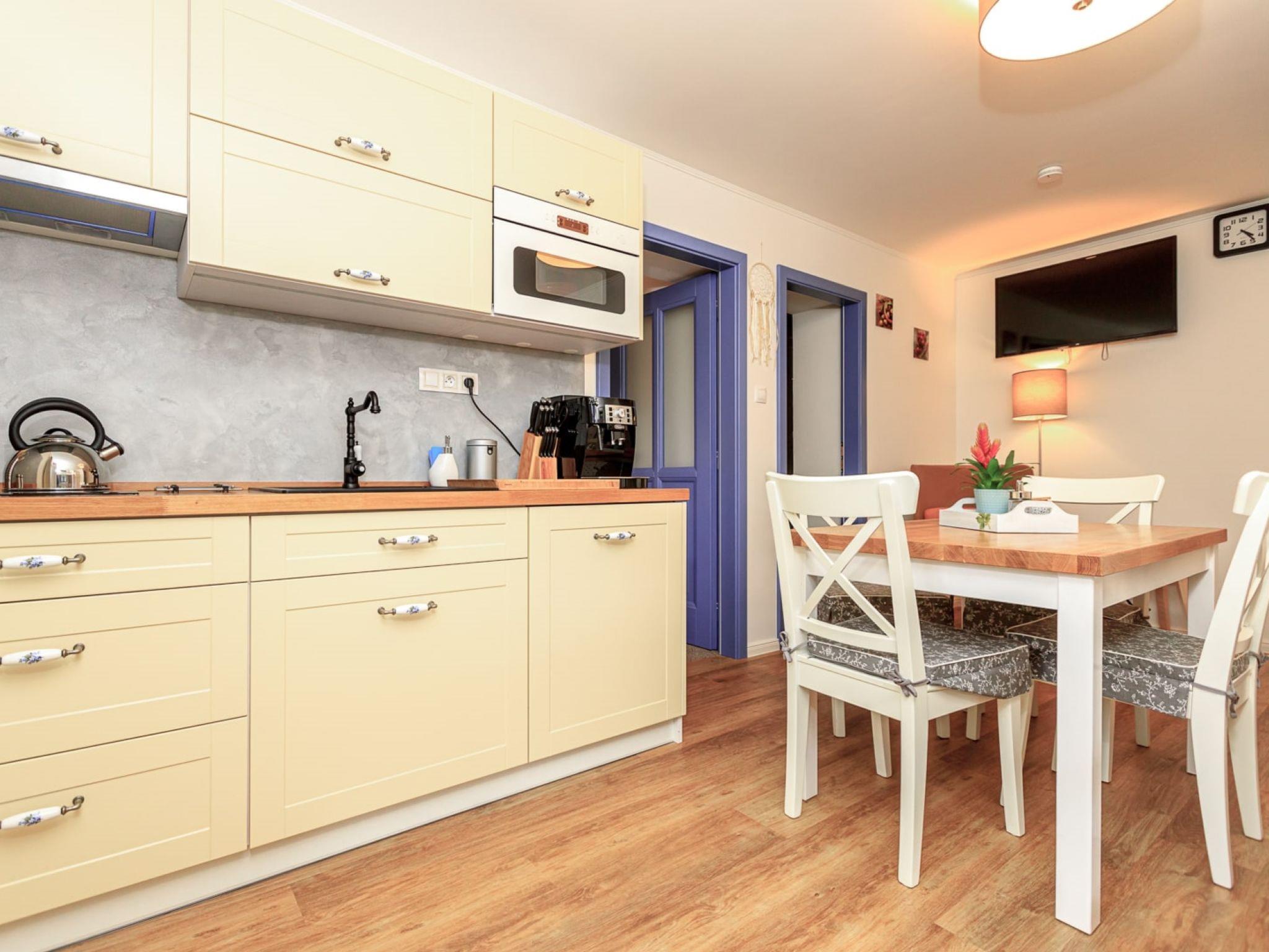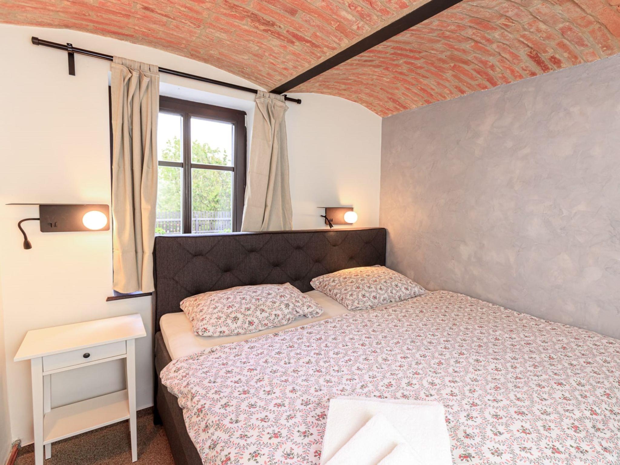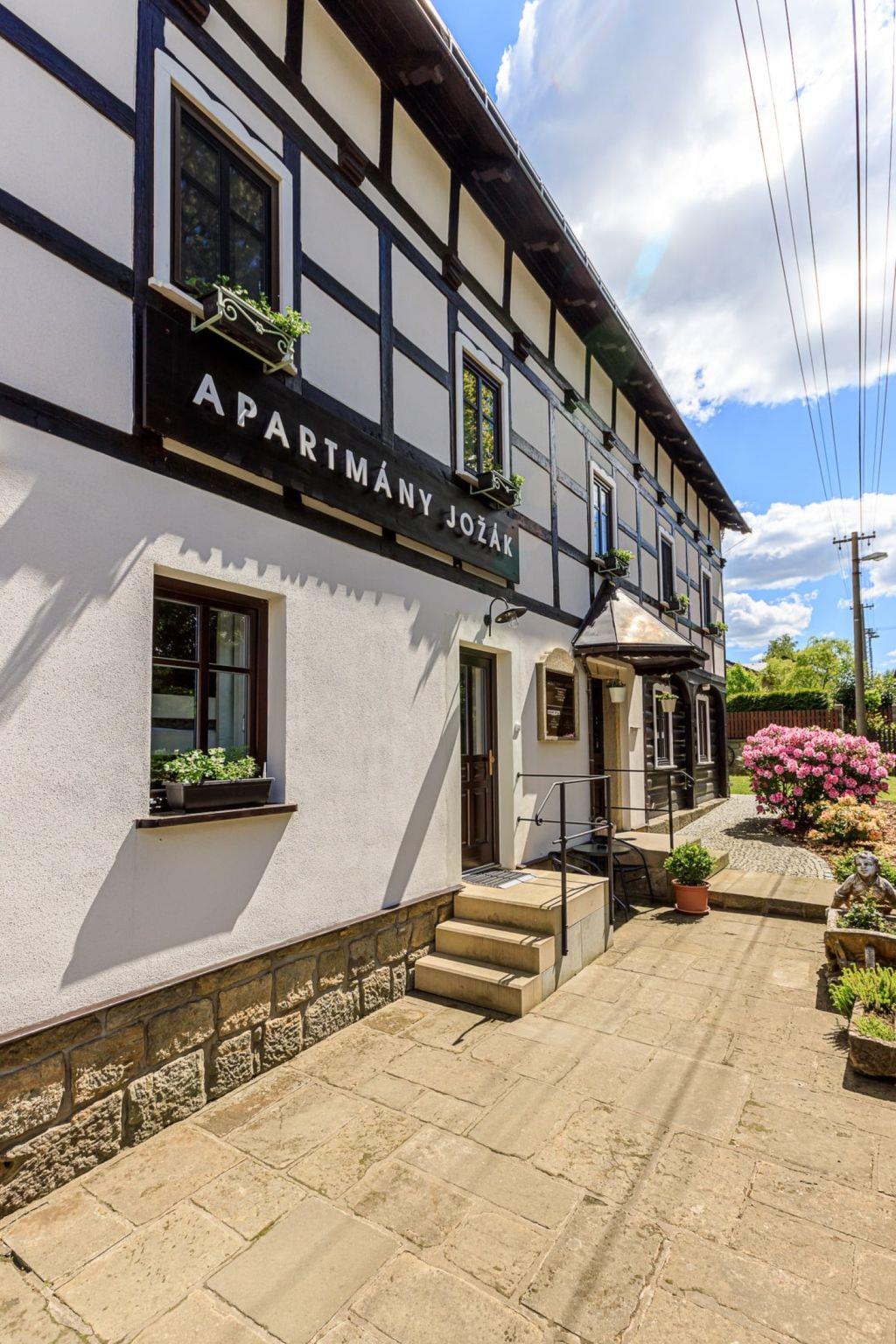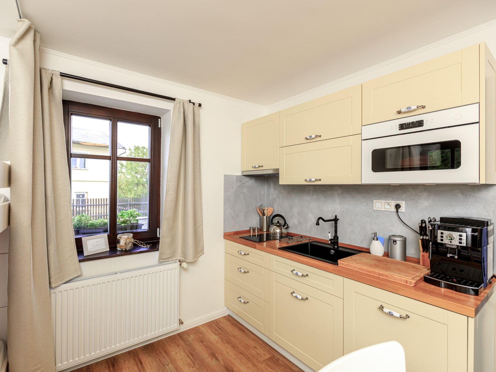 "Arnoltice 11 Deluxe", 2-room apartment on the ground floor. Entrance hall. Living/sleeping room with 1 x 2 bunk beds, satellite TV. 1 room with 1 double bed. Kitchenette (2 ceramic glass hob hotplates, toaster, kettle, microwave, electric coffee machine) with dining table. Shower/WC. Facilities: Internet (WiFi, free). Please note: suitable for families apartment street side. Non-smokers only. Private entrance.