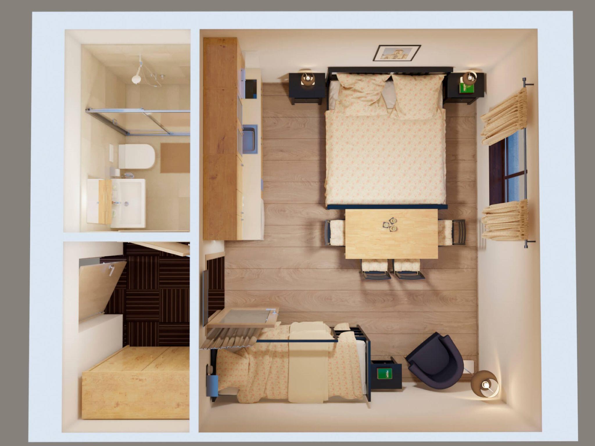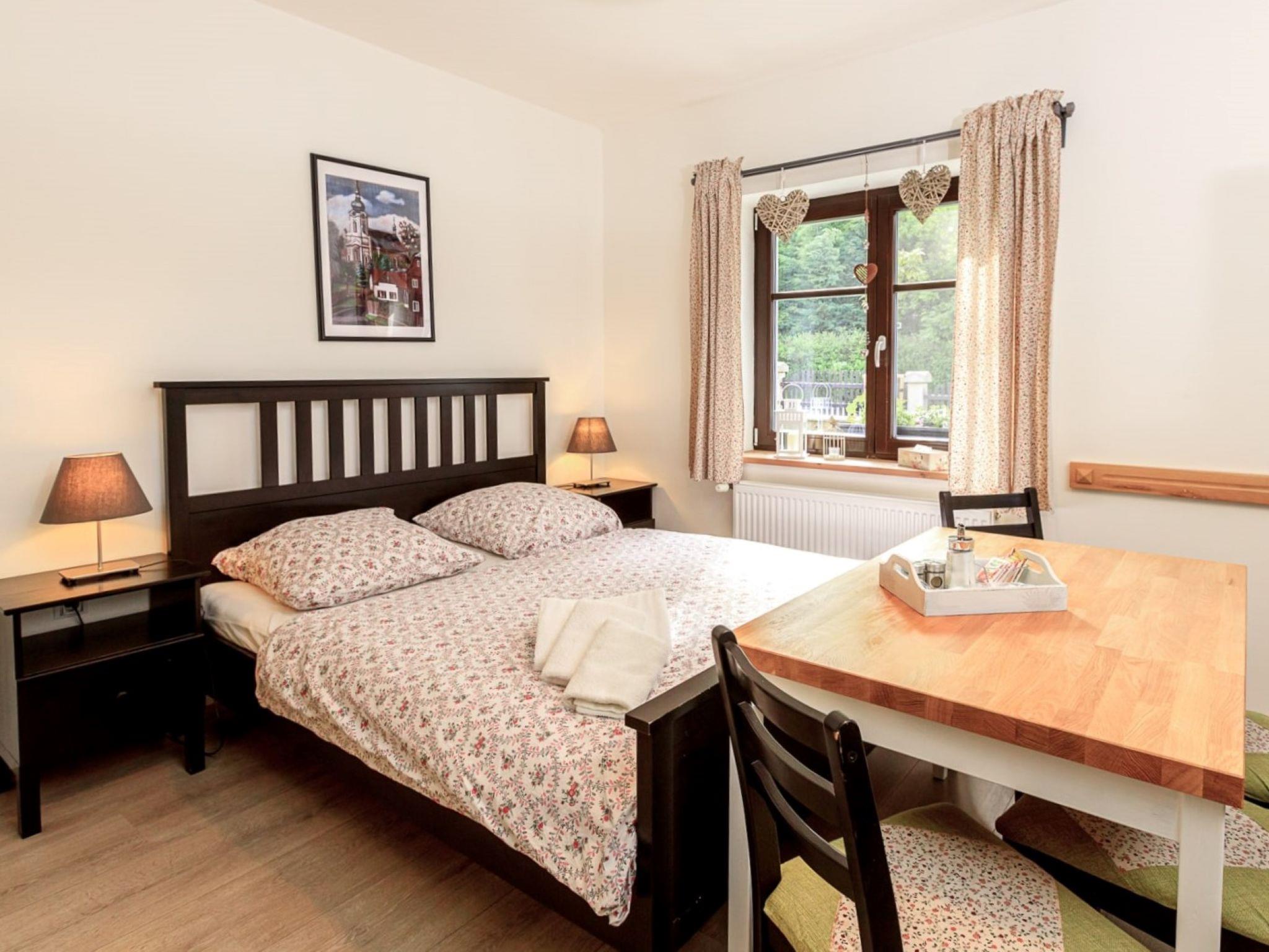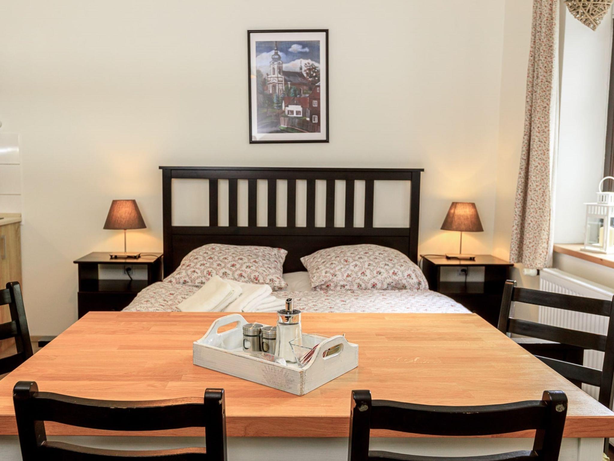 "Arnoltice 2", 1-room apartment on the ground floor. Entrance hall. Living/sleeping room with 1 x 2 bunk beds, 1 double bed and satellite TV. Kitchenette (2 ceramic glass hob hotplates, toaster, kettle, microwave) with dining table. Shower/WC. Facilities: Internet (WiFi, free). Please note: suitable for families apartment street side. Non-smokers only.