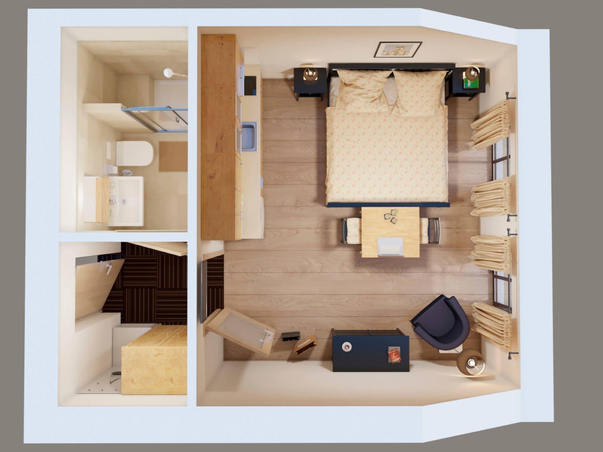 "Arnoltice 9", 1-room apartment on 1st floor. Entrance hall. Living/sleeping room with 1 double bed and satellite TV. Kitchenette (2 ceramic glass hob hotplates, toaster, kettle, microwave) with dining table. Shower/WC. View of the garden. Facilities: Internet (WiFi, free). Please note: suitable for families. Non-smokers only.