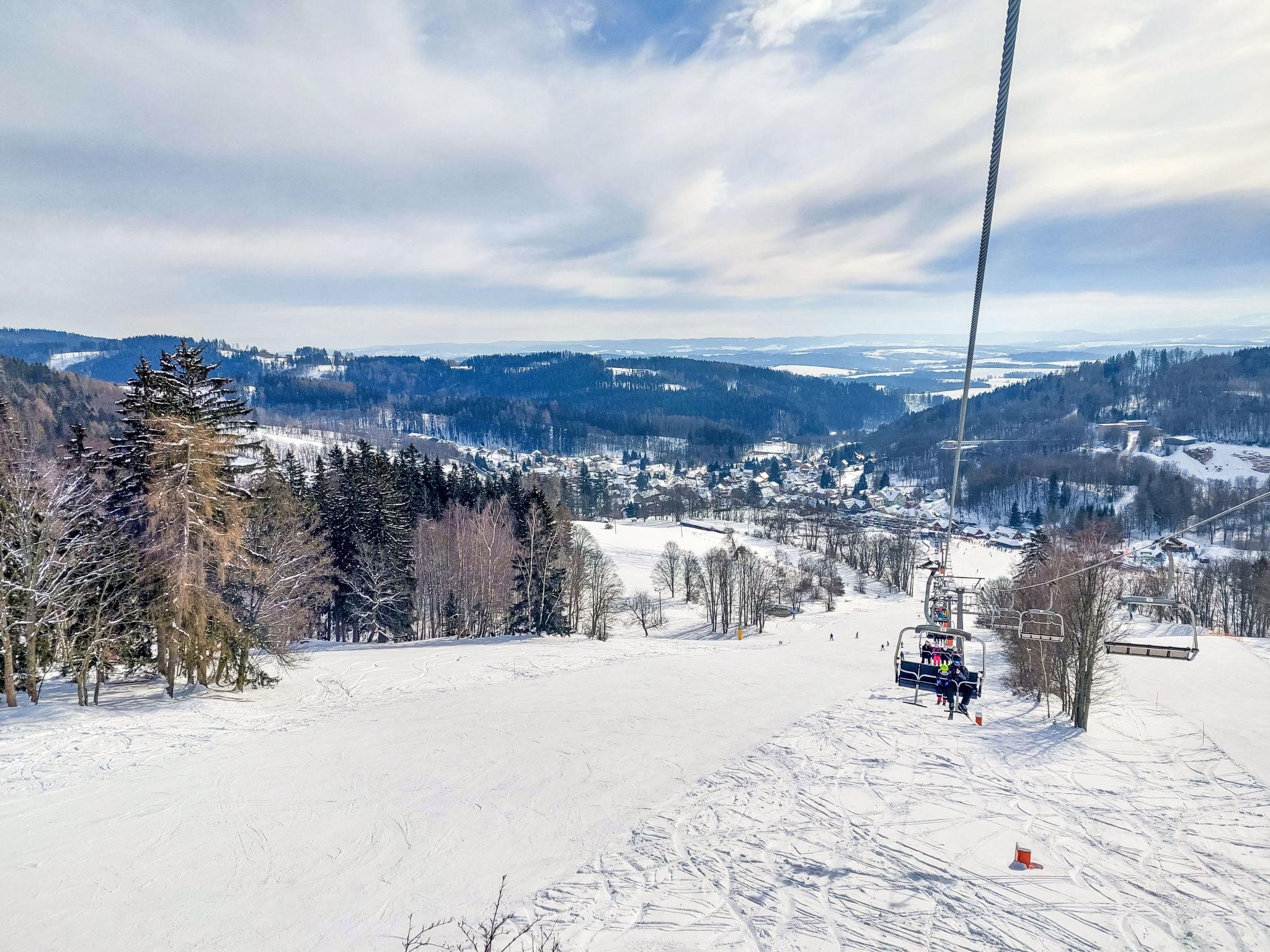 Cistá v Krkonoších 2 km from Cerný Dul: Child friendly, beautiful, comfortable holiday village "Holiday Hill 26", 500 m a.s.l., surrounded by trees and meadows. 43 houses in the resort. On the outskirts, in a secluded, quiet, sunny position, 1.5 km from the lake, 3 km from the skiing area, in the countryside. For shared use: property 6 ha, meadow, swimming pool heated (9 x 4 m, depth 120 cm, seasonal availability: 15.May. - 30.Sep. pool opening hours: 09:00-20:00). Shower/WC in the pool area, table tennis, children's playground (swing, sandbox). Private: terrace, garden furniture, barbecue. In the complex: reception, storage room for bicycles, storage room for skis, central heating system, ski boot dryer. Parking (for 2 cars) at the house. Shop 2.5 km, grocery 2.5 km, supermarket 7.5 km, restaurant 1.6 km, pub garden 400 m, bus stop "Cerný Dul, Cistá-pošta" 400 m, grass beach 1.5 km (small), indoor swimming pool 19 km. Golf course (18 hole) 14 km, tennis 2.5 km, sports centre 2.5 km, walking paths from the house, cycle lane 100 m, ski lift 3 km, chair lift 3 km, slopes 3 km, ski school 3 km, children's ski school 3 km, sled run 7 km, cross country ski track 100 m. Nearby attractions: Janské Lázne Spa 9 km, Vrchlabí 10 km, Aquapark Trutnov 25 km, Zoo Safari Dvur Králové 29 km, Bozkovské jeskyne 37 km, Adršpašské skály 44 km. Well-known ski regions can easily be reached: Cerný Dul 3 km, Herlíkovice 15 km, Pec pod Snežkou 22 km. Well-known lakes can easily be reached: Cistá 1.5 km, Vrchlabí 9 km. Hiking paths: Snežka 25 km.
