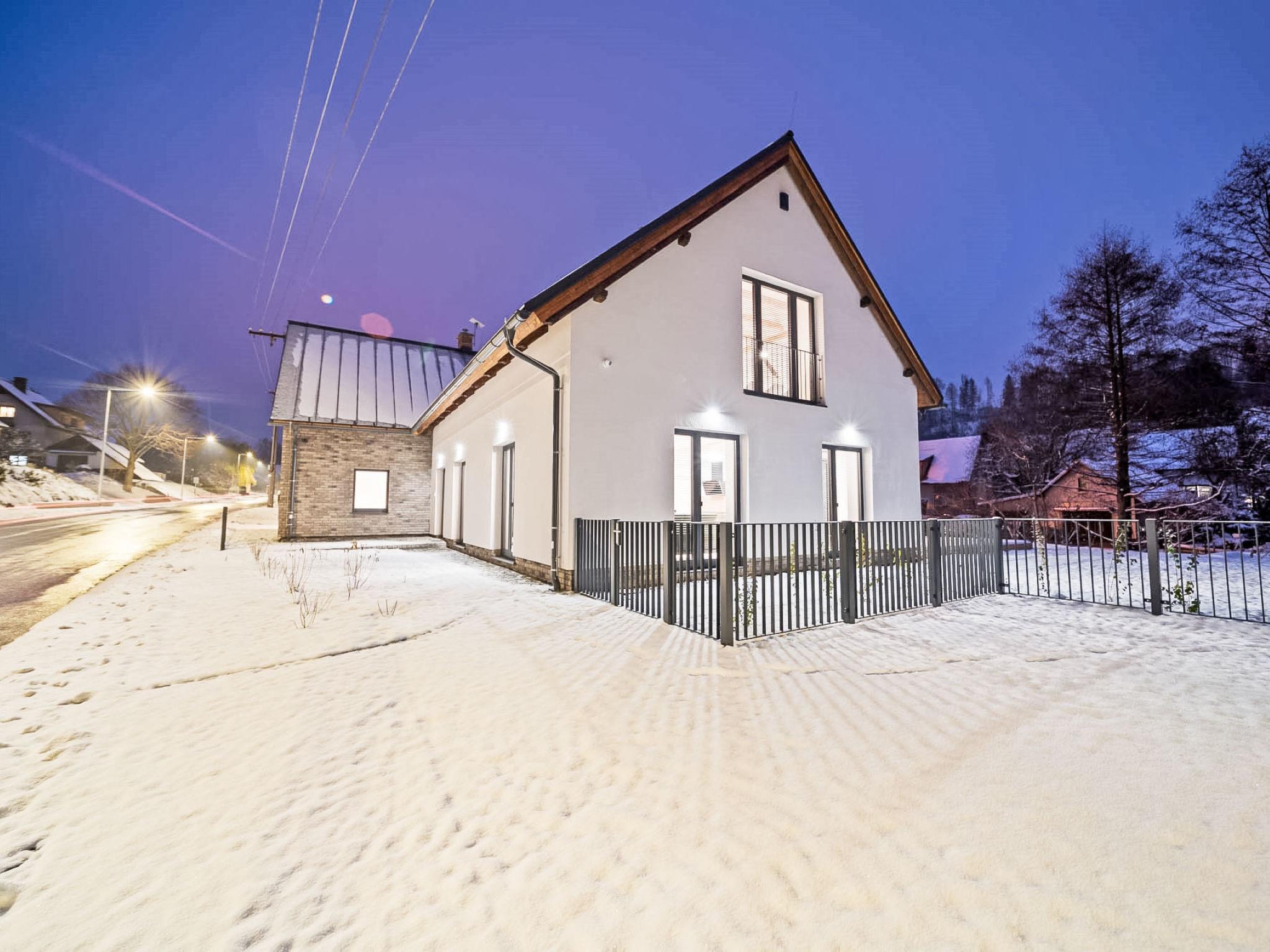 Modern house "Na Kovárne", 2 storeys, detached. In the resort, in a quiet, sunny position. Private: property (fenced). Terrace, garden furniture, barbecue, fireplace. In the house: central heating system. Parking at the house. Shop 900 m, supermarket 5 km, restaurant 1 km, bus stop "Horní Branná, kovárna" 50 m, railway station "Horní Branná" 2.8 km, outdoor swimming pool 6.5 km, indoor swimming pool 1.5 km, thermal baths "Janské Lázne" 20 km. Golf course (9 hole) 12 km, tennis 1 km, walking paths from the house, cycle lane 100 m, ski lift 5 km, ski school 5 km, cross country ski track 100 m, children's playground 1 km. Well-known ski regions can easily be reached: Knežický vrch-Vrchlabí, Jilemnice 5 km, Herlíkovice 7km, Dolní Dvur 9 km, Cerný Dul, Cerná Hora-Janské Lázne 12 km. Hiking paths: Špindleruv Mlýn, Stezka korunami stromu 18 km, Bozkovské jeskyne 26km,ZOO Dvur Králové 32 km, Mumlavský vodopád/Harrachov, Snežka 35 km.