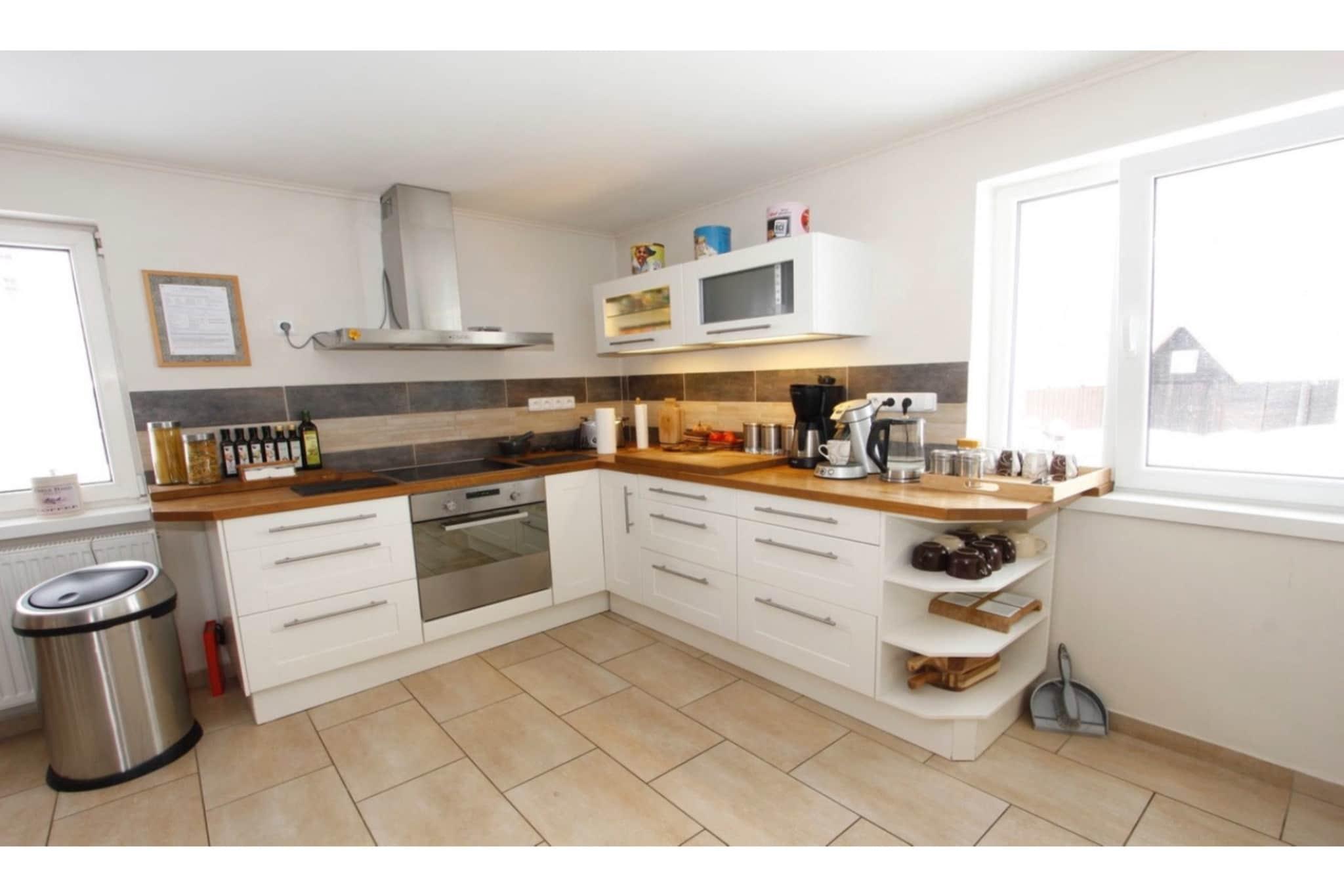 Villa Maximus – Wellness- och naturupplevelse i Erzgebirge Villa Maximus ligger inbäddad i Erzgebirge, i byn Nové Mesto – ett lugnt område i historiska Jáchymov, nära den tyska gränsen. Bara några minuter från världsberömda radon-kurorter är detta den perfekta destinationen för gäster som söker både avkoppling och äventyr. Den lokala spa-traditionen inspirerades av Nobelpristagaren Marie Curie, vars forskning lade grunden för de helande behandlingar som Jáchymov är känt för idag. På vintern förvandlas området till ett skidparadis, med toppskidorter som Klínovec, Boží Dar, Plešivec och Oberwiesenthal i närheten. Under de varmare månaderna kan gästerna njuta av vandring, cykling, golf, forsränning, fiske eller utforska de många slotten, fästningarna och historiska platserna i regionen. De berömda kurorterna Karlovy Vary och Mariánské Lázne ligger också inom räckhåll för en perfekt dagsutflykt. Ditt hem hemifrån Villa Maximus är rymlig, mysig och omsorgsfullt möblerad – perfekt för större familjer eller grupper på upp till 12 personer. Huset inkluderar: Ett bekvämt vardagsrum Ett fullt utrustat kök 6 sovrum och 6 badrum Ett mysigt rekreationsrum för spel och avkoppling Gå ut på balkongen eller trädgårdsterrasserna och njut av den fantastiska utsikten över det omgivande landskapet, medeltida torn och skidbackarna i Napravná. Den stora trädgården erbjuder gott om plats för barn att leka fritt och säkert. Privat parkering finns för 3 till 4 bilar. Varför välja Villa Maximus? Gångavstånd till Jáchymovs världsberömda spaanläggningar Lugnt läge nära naturen, skidorter och wellnesscenter Rymligt boende perfekt för grupper eller familjer Hisnande utsikt över bergen och en familjevänlig trädgård En sällsynt chans att bo i en stad med ett unikt vetenskapligt och spa-arv Boka din vistelse och upplev den helande lugnet i Erzgebirge – där välbefinnande, natur och historia möts.