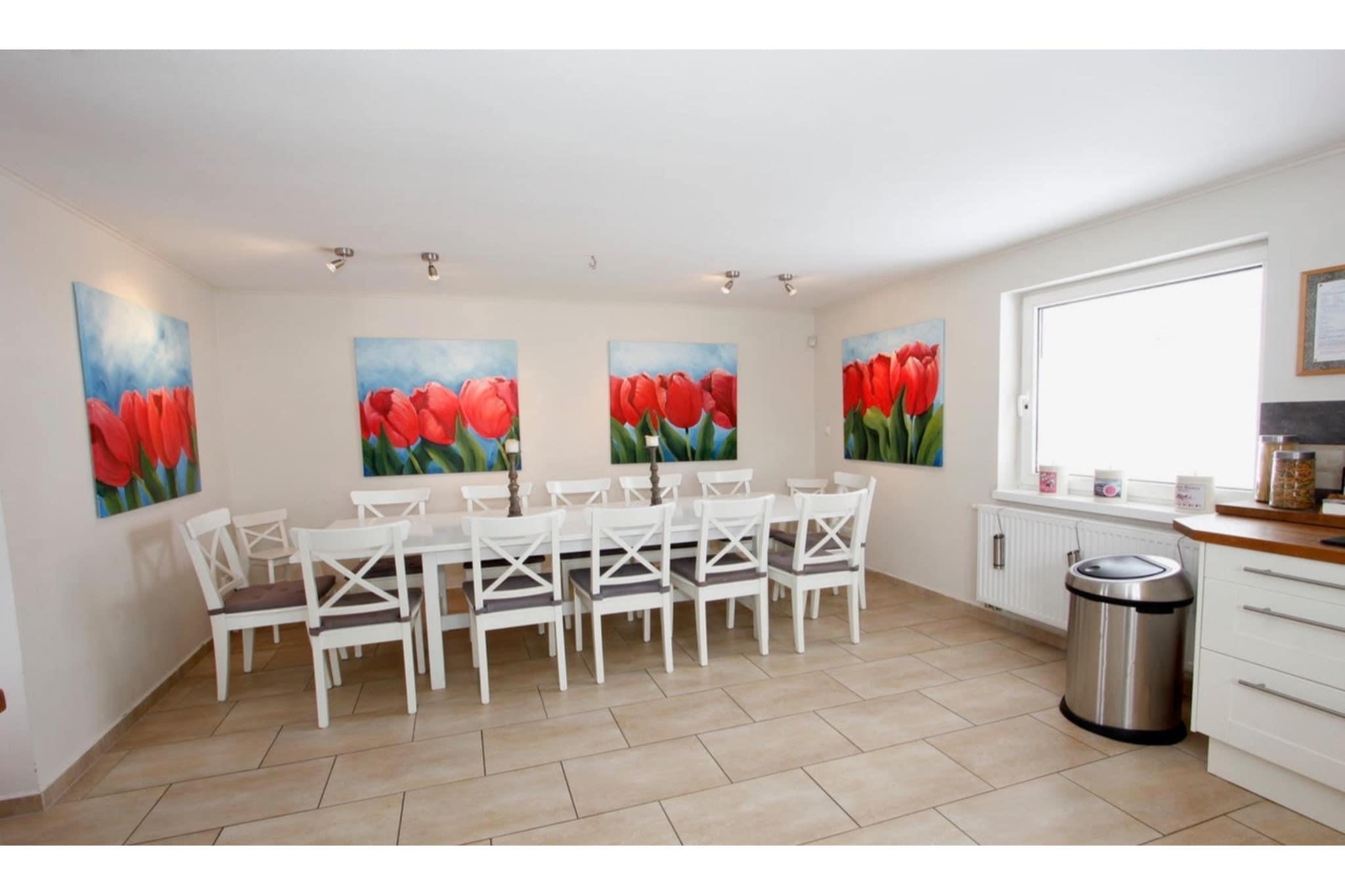 Bottenvåningen: (Vardagsrum(TV(platt-tv, satellit, Holländska TV-kanaler, Tyska TV-kanaler, Internationella TV-kanaler), Braskamin(trä), sitthörna, DVD-spelare, balkong), Kök(matbord(12 personer), vattenkokare, spis(Spis med 4 kokplattor, keramisk, induktion), Fläkt, kaffebryggare, ugn, mikrovågsugn, diskmaskin, kyl och frys), badrum(badkar, handfat, toalett ), WC(handfat)) På våning 1: (Bedroom with bathroom(dubbelsäng, dusch, handfat, toalett ), Bedroom with bathroom(dubbelsäng, dusch, handfat, toalett ), Bedroom with bathroom(dubbelsäng, dusch, handfat, toalett )) På våning 2: (Bedroom with bathroom(dubbelsäng, badkar med dusch, handfat, toalett ), DVD-spelare) Källare: (tvättstuga(torktumlare, handfat, toalett , tvättmaskin), gillestuga(matbord, sitthörna, sällskapsspel), förråd) Gästlägenhet i entréplan: (sovrum(våningssäng, sitthörna), Anslutande sovrum(dubbelsäng), badrum(dusch, handfat, toalett )) terrass(privat), trädgård(privat), trädgårdsmöbler, grill, parkering, spjälsäng, barnstol, hårfön