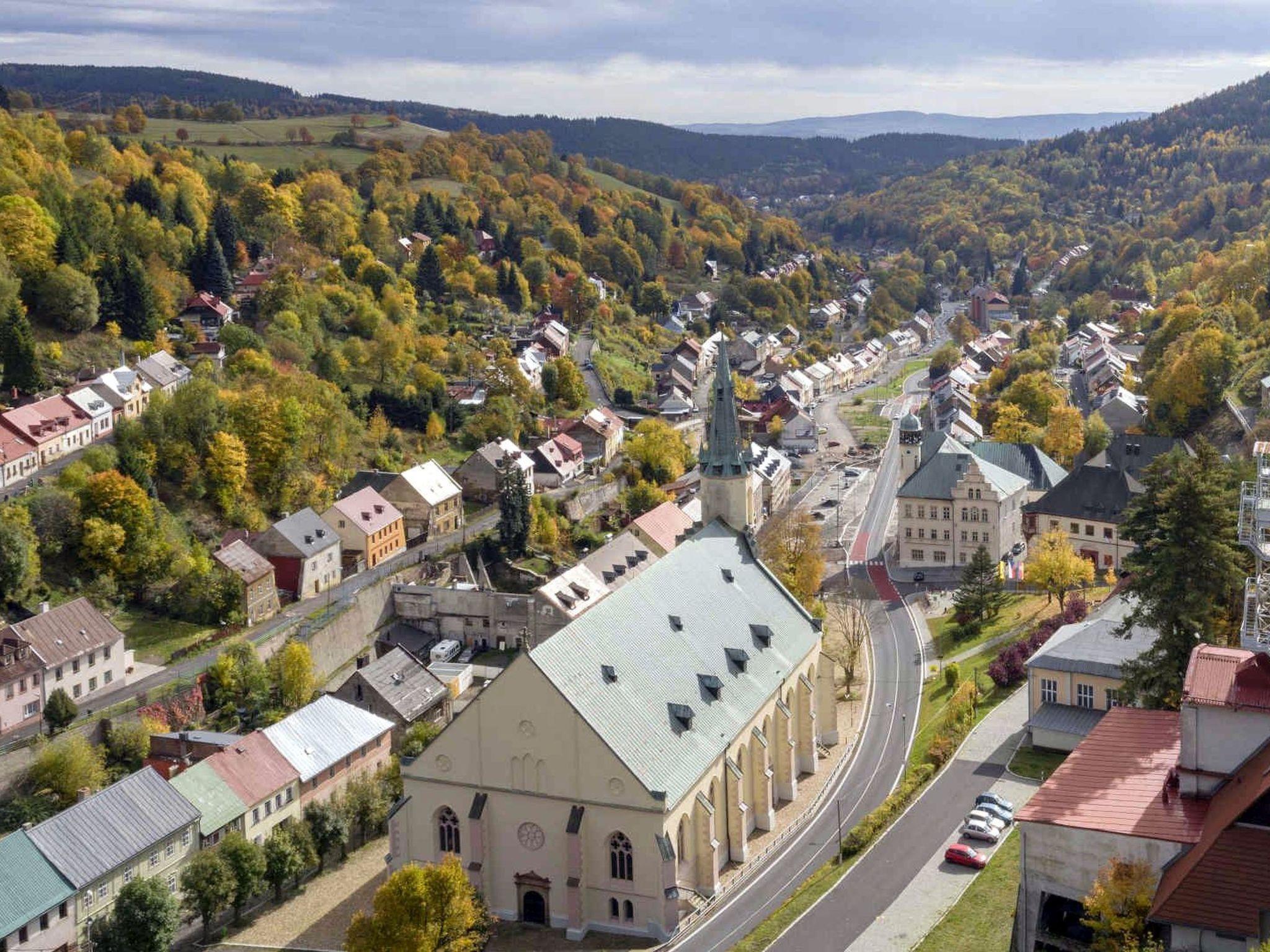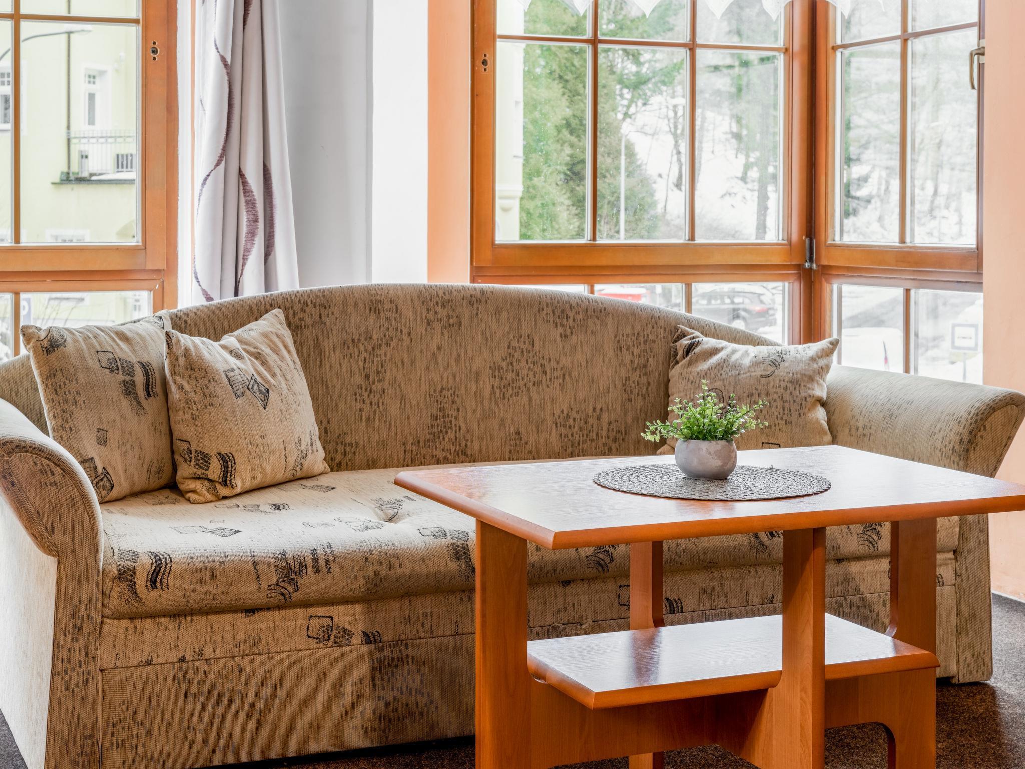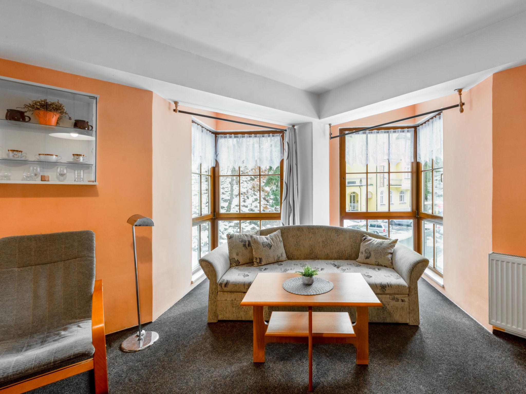 Modern apartment block "Lanovka", 4 storeys. In the centre of Jáchymov, 2.5 km from the skiing area. In the house: lift, storage room for bicycles, storage room for skis, central heating system. Parking at the house. Grocery 100 m, supermarket 150 m, shopping centre 6 km, restaurant, pub garden 100 m, bus stop "Jáchymov" 150 m, outdoor swimming pool 15 km, indoor swimming pool 150 m. Golf course (18 hole) 6 km, tennis 8 km, indoor tennis centre 13 km, minigolf 800 m, sports centre 13 km, walking paths from the house 50 m, cycle lane 300 m, ski lift 1 km, chair lift 2.5 km, slopes 2.5 km, ski rental 2.5 km, ski school 8 km, children's ski school 2.5 km, sled run 13 km, cross country ski track 500 m, ice rink 13 km, children's playground 600 m. Nearby attractions: Aqua Centre Agricola 500 m, Spa&Wellness Centre, Boží Dar 8 km, Karlovy Vary 20 km, Oberwiesetnhal 13 km, Annaberg-Buchholz 33 m. Well-known ski regions can easily be reached: Klínovec 2.5 km, Plešivec 13 km, Fichtelberg 11 km. Hiking paths: Krušnohorská magistrála, Ježíškova cesta. Please note: Additional accommodations can be booked.
