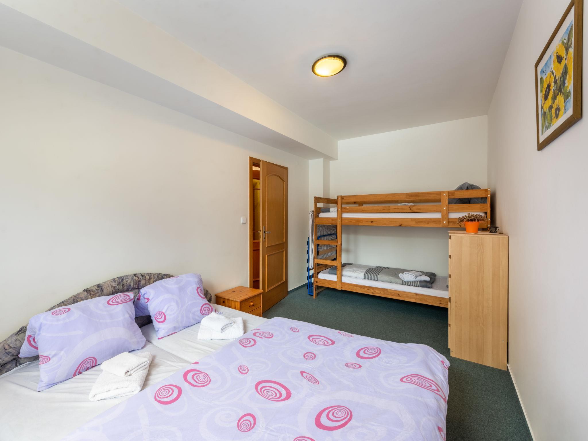 Modern apartment block "Lanovka", 4 storeys. In the centre of Jáchymov, 2.5 km from the skiing area. In the house: lift, storage room for bicycles, storage room for skis, central heating system. Parking at the house. Grocery 100 m, supermarket 150 m, shopping centre 6 km, restaurant, pub garden 100 m, bus stop "Jáchymov" 150 m, outdoor swimming pool 15 km, indoor swimming pool 150 m. Golf course (18 hole) 6 km, tennis 8 km, indoor tennis centre 13 km, minigolf 800 m, sports centre 13 km, walking paths from the house 50 m, cycle lane 300 m, ski lift 1 km, chair lift 2.5 km, slopes 2.5 km, ski rental 2.5 km, ski school 8 km, children's ski school 2.5 km, sled run 13 km, cross country ski track 500 m, ice rink 13 km, children's playground 600 m. Nearby attractions: Aqua Centre Agricola 500 m, Spa&Wellness Centre, Boží Dar 8 km, Karlovy Vary 20 km, Oberwiesetnhal 13 km, Annaberg-Buchholz 33 m. Well-known ski regions can easily be reached: Klínovec 2.5 km, Plešivec 13 km, Fichtelberg 11 km. Hiking paths: Krušnohorská magistrála, Ježíškova cesta. Please note: Additional accommodations can be booked.