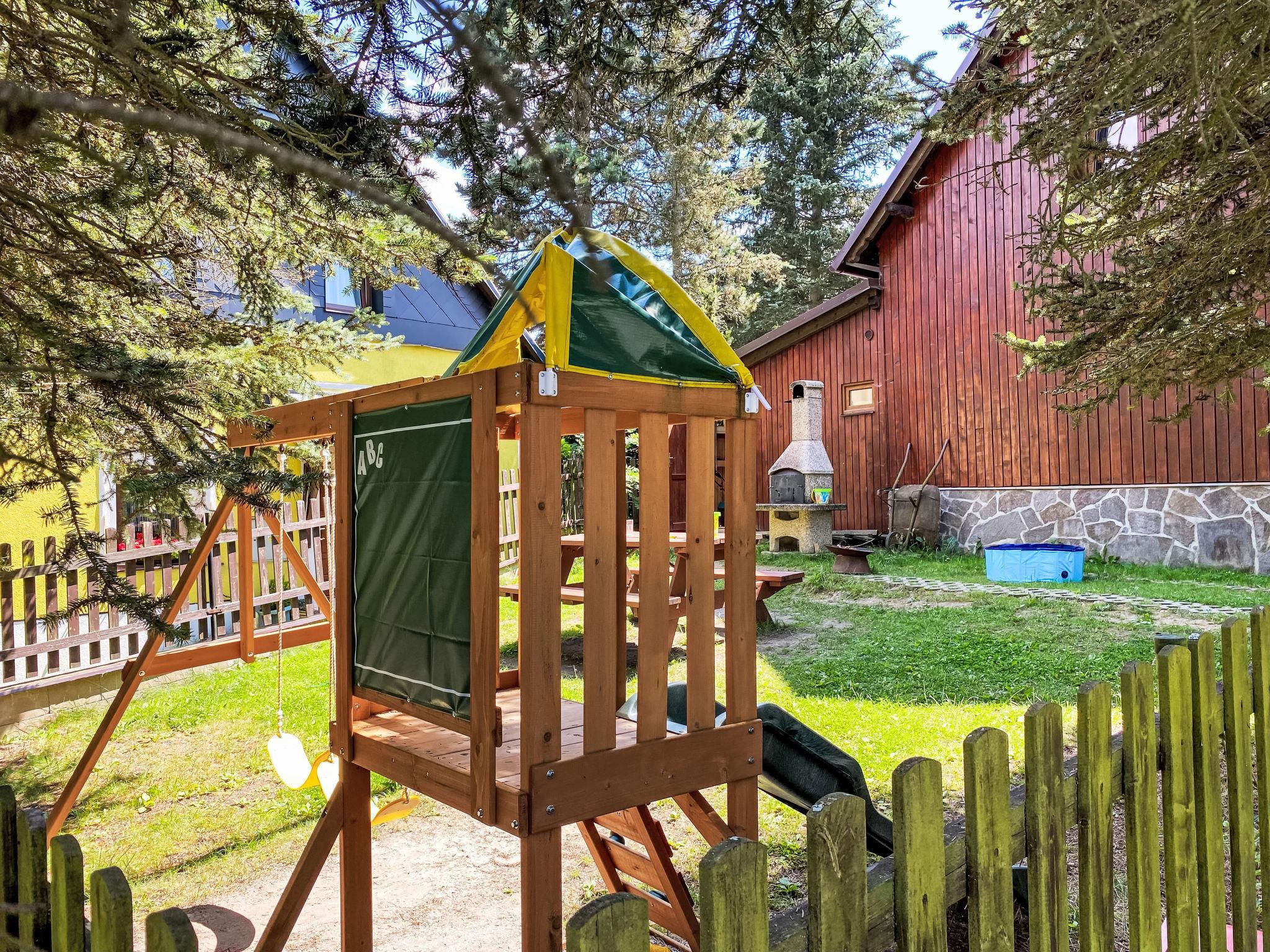Kovárská 12 km from Klínovec: Very comfortable chalet "Kovárská", renovated in 2014. On the outskirts, in a quiet position, 100 m from the edge of the forest, 10 km from the skiing area. Private: property, garden 200 m2 (fenced). Barbecue, children's playground (slide, swing, sandbox). In the house: storage room for bicycles, storage room for skis, central heating system. Motor access to the house. Public parking on the road. Grocery 350 m, restaurant, bus stop "Kovárská" 350 m, outdoor swimming pool 13 km, indoor swimming pool 19 km, thermal baths "Karlovy Vary" 40 km. Ski lift 10 km, chair lift 10 km, slopes 10 km, ski rental 10 km, ski school 10 km, children's ski school 10 km. Nearby attractions: Boží Dar 15 km, Annaberg-Buchholz Stadt 17 km, Klášterec n. Ohrí SPA 19 km, Jáchymov SPA 22 km, Karlovy Vary SPA 40 m. Well-known ski regions can easily be reached: Klínovec 10 km, Oberwiesenthal/Fichtelberg 17 km, Plešivec 25 km. Well-known lakes can easily be reached: Vodní nádrž Nechranice 34 km. Hiking paths: Krušnohorská magistrála. Please note: suitable for families, suitable for seniors.