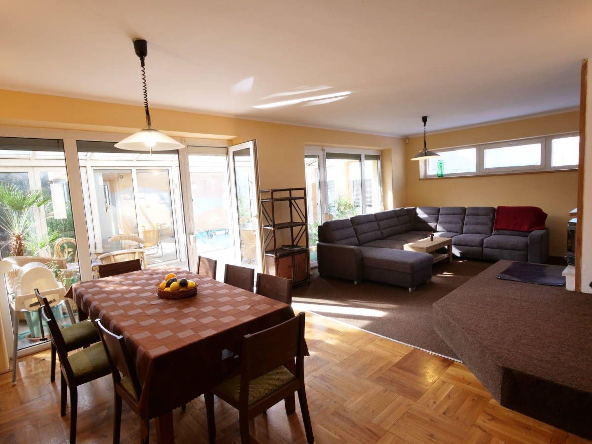 4 bedrooms / beds in the bedrooms see the picture gallery / - good for max. 8 adults and 2 children. If required, you can also book the fully equipped flat Miki, then a total of 5 bedrooms and good for max. 10 adults and 2 children. The flat Miki can not be booked separately, so only bookable from the group in the main house Joska !!! In the house : living room with fireplace, 1 x winter garden with sitting area, 2xDUWC, including a bathtub, 1x separate toilet, 1x separate shower in sauna room, equipped kitchen, dishwasher, washing machine, satellite TV, central heating, heated indoor pool approx 4.6x2.8 m, sauna, steam bath, roof terrace 100 m2, pergola with barbecue, garden, fenced, good for max. 10 persons. INTERNET ACCESS via WLAN, 2 dogs allowed..., car park on the property max. 4 cars, WALLBOX up to 11 kW available, please register in advance