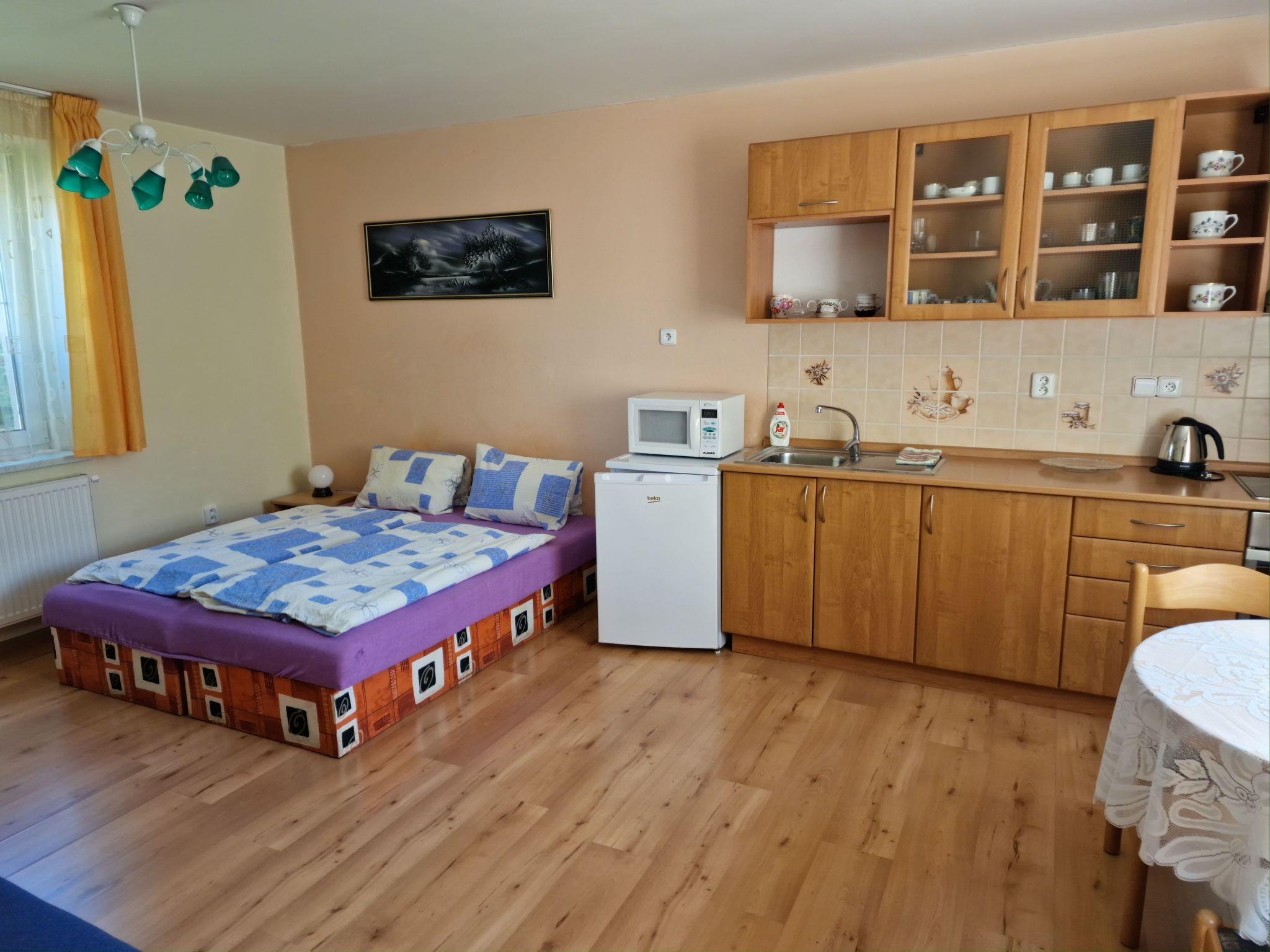 - 1. room - 1 double bed, 1 sofa (up to 2 people), kitchenette (oven, refrigerator, microwave oven, hob), separated bathroom