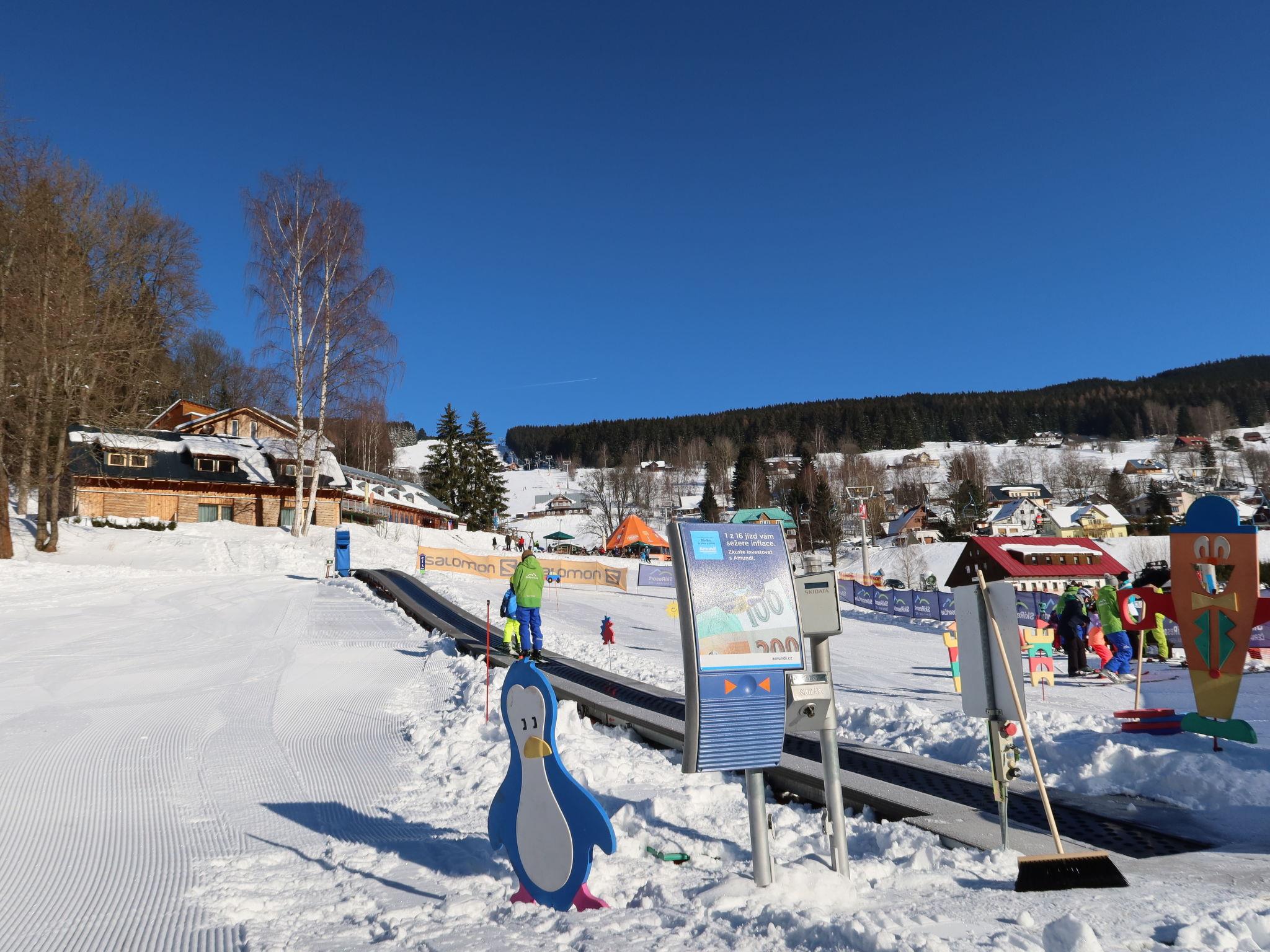 Child friendly, comfortable chalet "Portášky, Velká Úpa", 2 storeys. 3 apartments in the property. In the district of Velká Úpa 2 km from the centre of Pec pod Snežkou, 12 km from the centre of Janské Lázne, 20 km from the centre of Trutnov, in a secluded, sunny, elevated position, directly by the skiing area. Breakfast on request (extra). Parking (in winter extra). Grocery 50 m, restaurant 100 m, bus stop "Pec pod Snežkou, dopr. Terminál" 400 m. Golf course (18 hole) 15 km, tennis 2 km, ski lift, chair lift, slopes 10 m, ski rental, ski bus stop, ski school, children's ski school 100 m, children's playground 600 m. Nearby attractions: Bobová dráha/Relaxpark Pec pod Snežkou 3 km, Snežka (1603 m) 6 km, Mladé Buky 12 km, Kowary 26 km, Aquapark Vrchlabí 29 km, Park miniatur Myslakowice, Karpacz 34 km, Adršpašsko-teplické skály 40 km, Jelenia Góra, Zoo Dvur Králové, Kuks 45 km. Well-known ski regions can easily be reached: Portášky 10 m, Cerná hora-Pec pod Snežkou 3 km, Cerná Hora-Janské Lázne 12 km. Well-known lakes can easily be reached: Dolce 25 km. Hiking paths: Krkonošský národní park. Please note: In case of good snow conditions, the house is accessible on skis. The apartments are adjacent to the pension Modrín with all services: wellness, restaurant (extra) - available only in high season. Parking in the winter season in guarded parking lots (150 m, extra). Baggage transport by roller (extra).