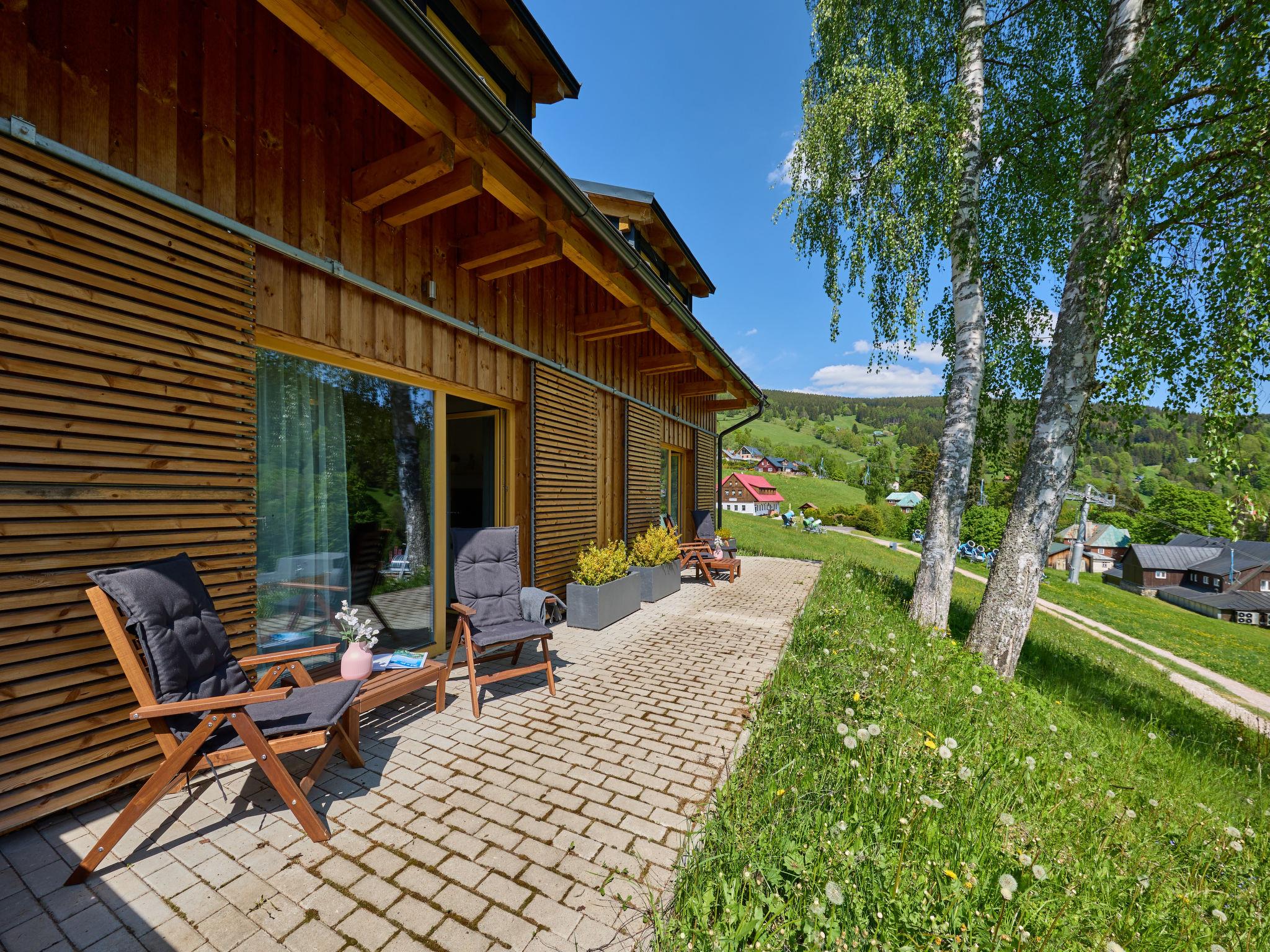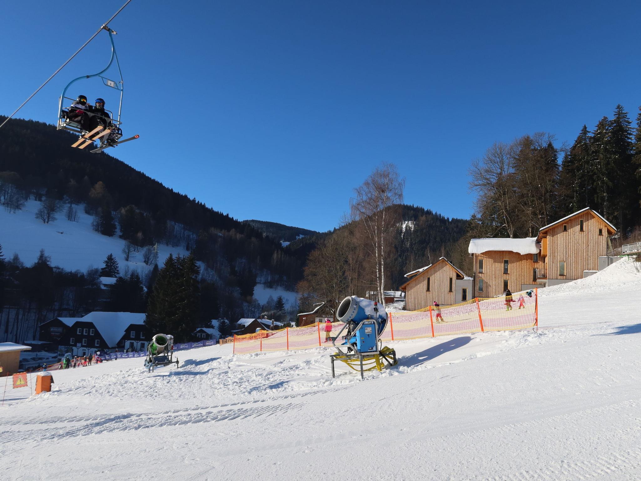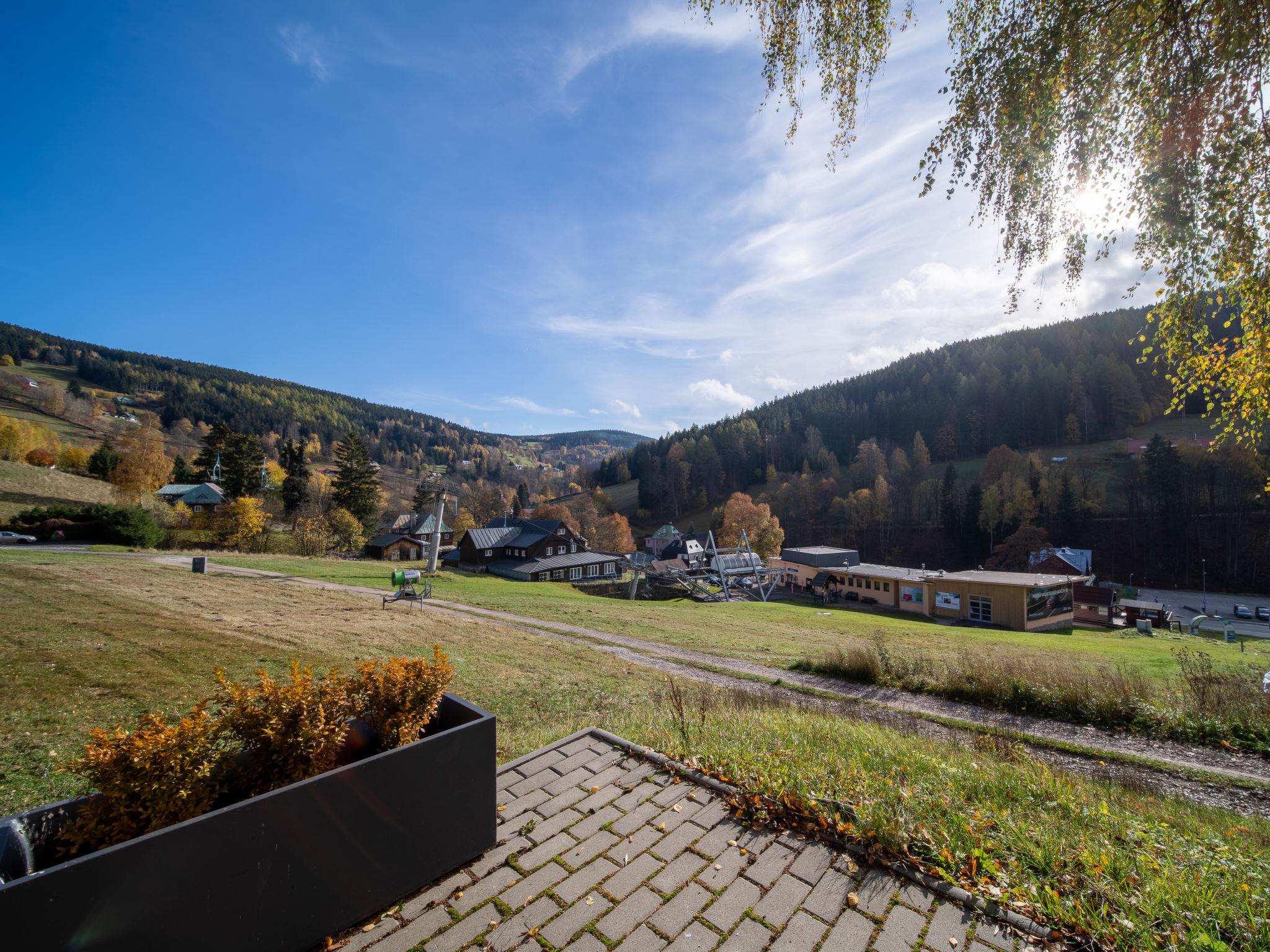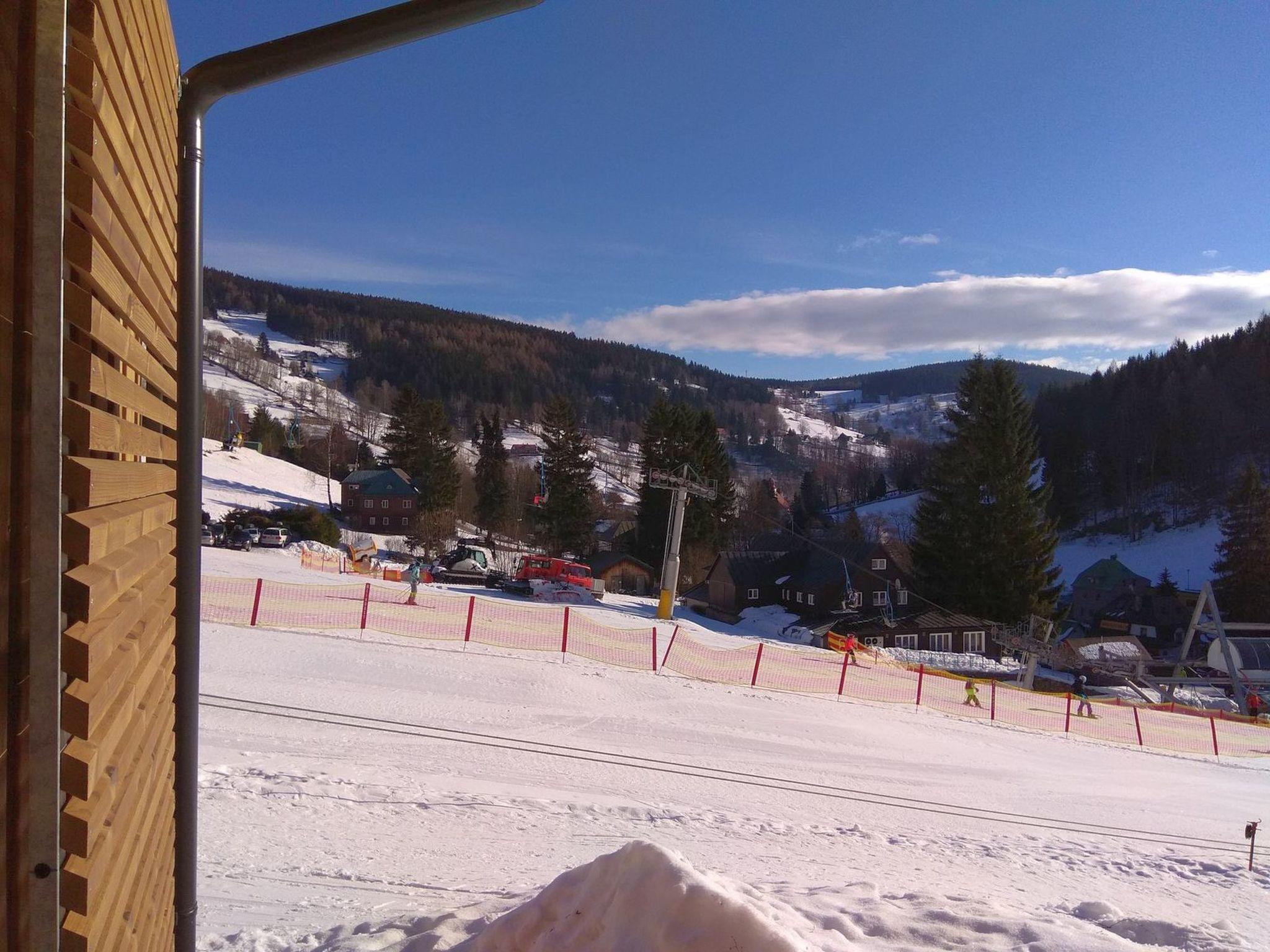 "Ski-In Ski-Out Mountain Duplex Portášky3", 2-room maisonette 65 m2. Bright, modern furnishings: living room with satellite TV. Kitchenette (2 ceramic glass hob hotplates, toaster, kettle, microwave, electric coffee machine) with dining table. Sep. WC. Heating. Upper floor: 1 room with 2 beds and 1 double bed. Shower/WC. Terrace. Terrace furniture. Beautiful view of the countryside. Facilities: hair dryer. Internet (WiFi, free). Please note: suitable for families. Non-smokers only. Maximum 1 small pet/ dog allowed.