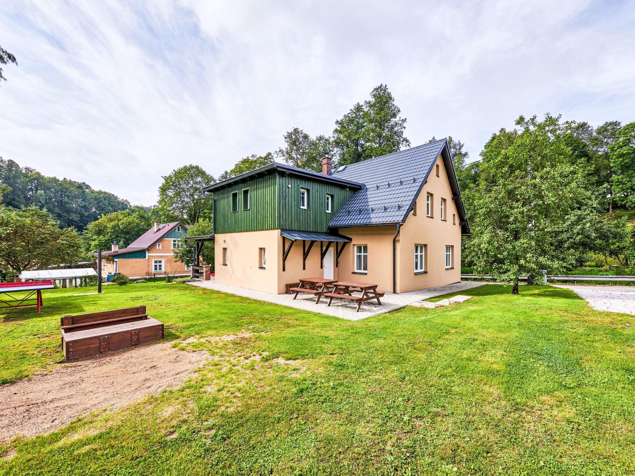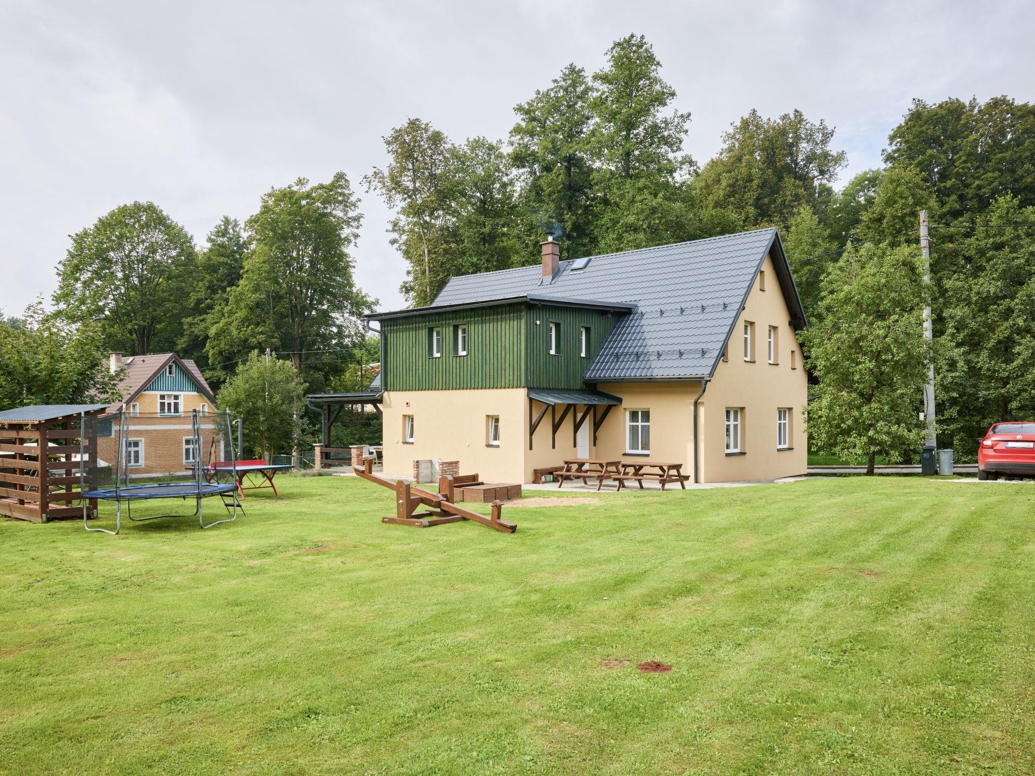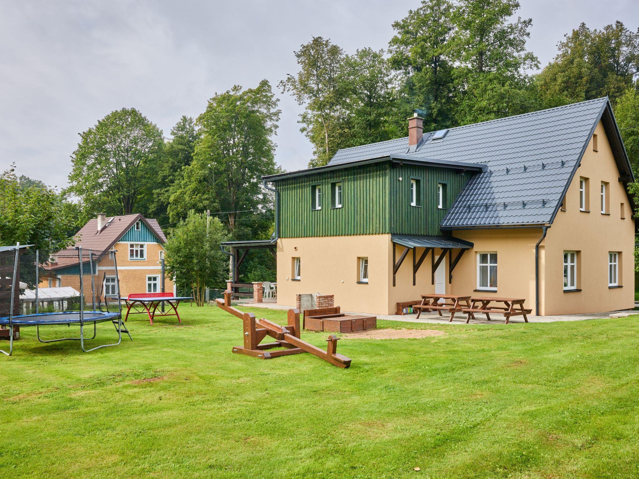 4 km from Rudník: Very beautiful chalet "Bolkov", 2 storeys, built in 1940, renovated in 2021. 2 apartments in the property. On the outskirts, in a quiet, sunny position, 100 m from the edge of the forest, 8 km from the skiing area. For shared use: property 2'500 m2, garden (not fenced). Table tennis, patio, garden furniture, fireplace, children's playground (swing, sandbox). In the house: trampoline, storage room for bicycles, storage room for skis, washing machine, tumble dryer (for shared use). Parking (for 5 cars) on the premises. Grocery 4 km, supermarket 11 km, restaurant 400 m, bus stop "Rudník - pivovar" 2 km, thermal baths "Janské Lázne" 14 km. Tennis 14 km, walking paths from the house 10 m, cycle lane 100 m, ski lift 8 km, chair lift 8 km, slopes 8 km, ski school 8 km, children's ski school 8 km, sled run 12 km, cross country ski track 100 m, ice rink 14 km. Nearby attractions: Cerná hora, Stezka v korunách stromu 12 km, Vrchlabí 13 km, Janské Lázne Spa 14 m, Aquapark Trutnov 21 km, Labská prehrada 26 km, Zoo Safari Dvur Králové, Špindleruv Mlýn 28 km, Hospital Kuks 37 km, Adršpašské skály 40 km. Well-known ski regions can easily be reached: Cerný Dul 8 km, Mladé Buky 12 km, Janské Lázne 14 km, Herlíkovice 19 km, Pec pod Snežkou 26 km. Hiking paths: Snežka 25 km. Please note: suitable for families.