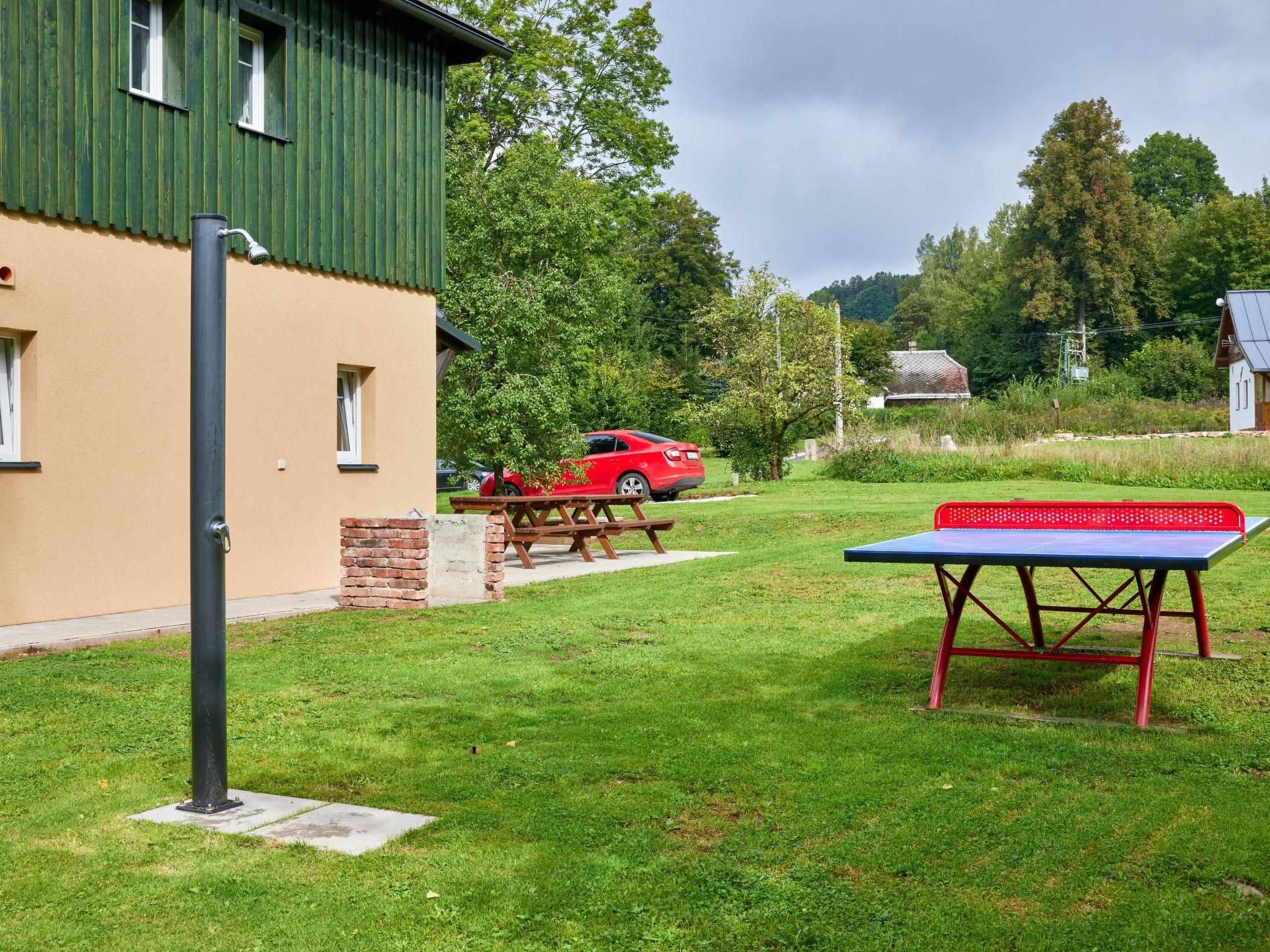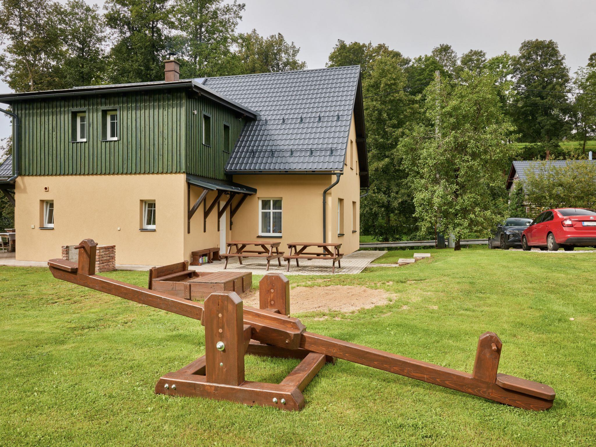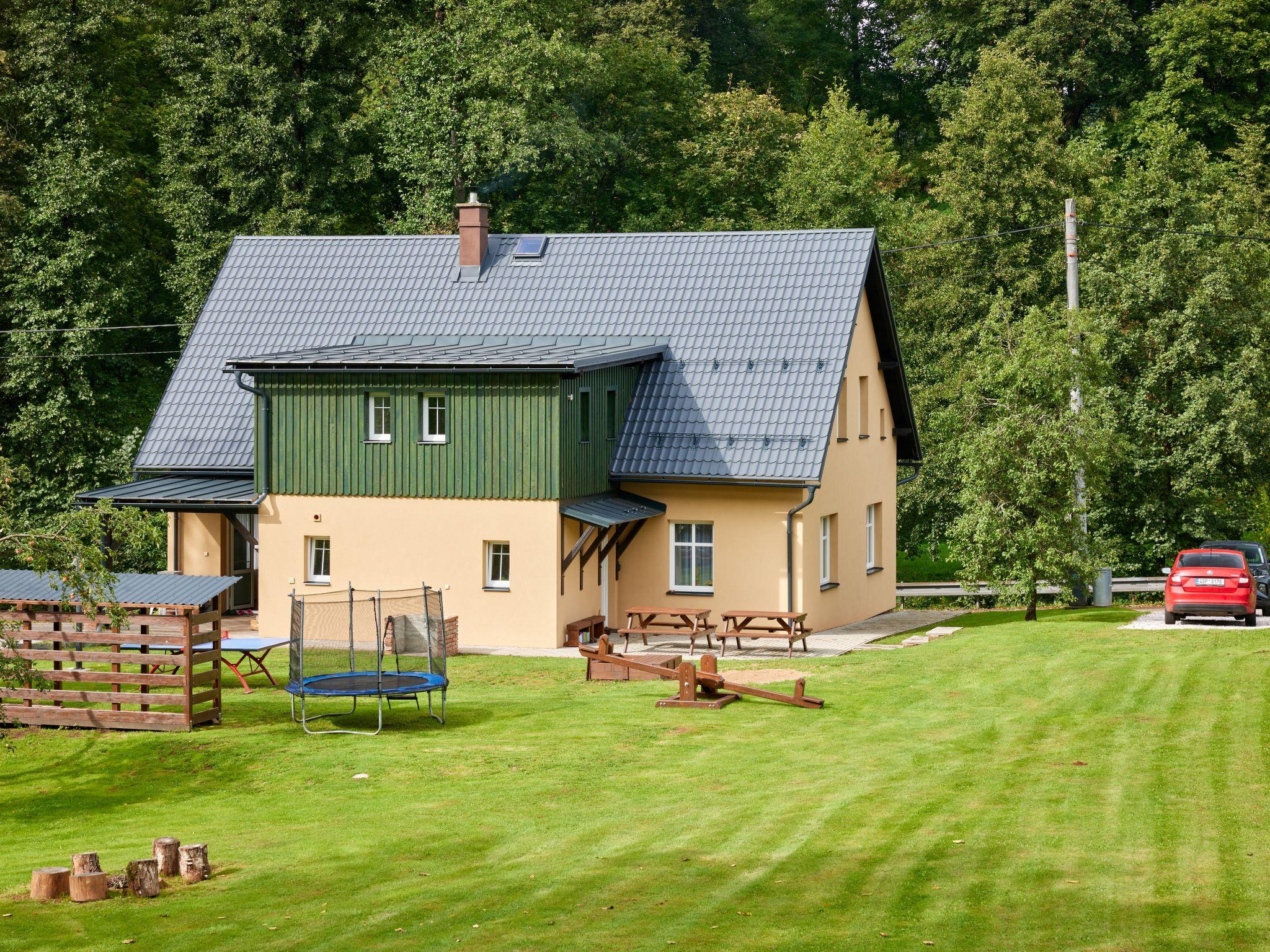 4 km from Rudník: Very beautiful chalet "Bolkov", 2 storeys, built in 1940, renovated in 2021. 2 apartments in the property. On the outskirts, in a quiet, sunny position, 100 m from the edge of the forest, 8 km from the skiing area. For shared use: property 2'500 m2, garden (not fenced). Table tennis, patio, garden furniture, fireplace, children's playground (swing, sandbox). In the house: trampoline, storage room for bicycles, storage room for skis, washing machine, tumble dryer (for shared use). Parking (for 5 cars) on the premises. Grocery 4 km, supermarket 11 km, restaurant 400 m, bus stop "Rudník - pivovar" 2 km, thermal baths "Janské Lázne" 14 km. Tennis 14 km, walking paths from the house 10 m, cycle lane 100 m, ski lift 8 km, chair lift 8 km, slopes 8 km, ski school 8 km, children's ski school 8 km, sled run 12 km, cross country ski track 100 m, ice rink 14 km. Nearby attractions: Cerná hora, Stezka v korunách stromu 12 km, Vrchlabí 13 km, Janské Lázne Spa 14 m, Aquapark Trutnov 21 km, Labská prehrada 26 km, Zoo Safari Dvur Králové, Špindleruv Mlýn 28 km, Hospital Kuks 37 km, Adršpašské skály 40 km. Well-known ski regions can easily be reached: Cerný Dul 8 km, Mladé Buky 12 km, Janské Lázne 14 km, Herlíkovice 19 km, Pec pod Snežkou 26 km. Hiking paths: Snežka 25 km. Please note: suitable for families.