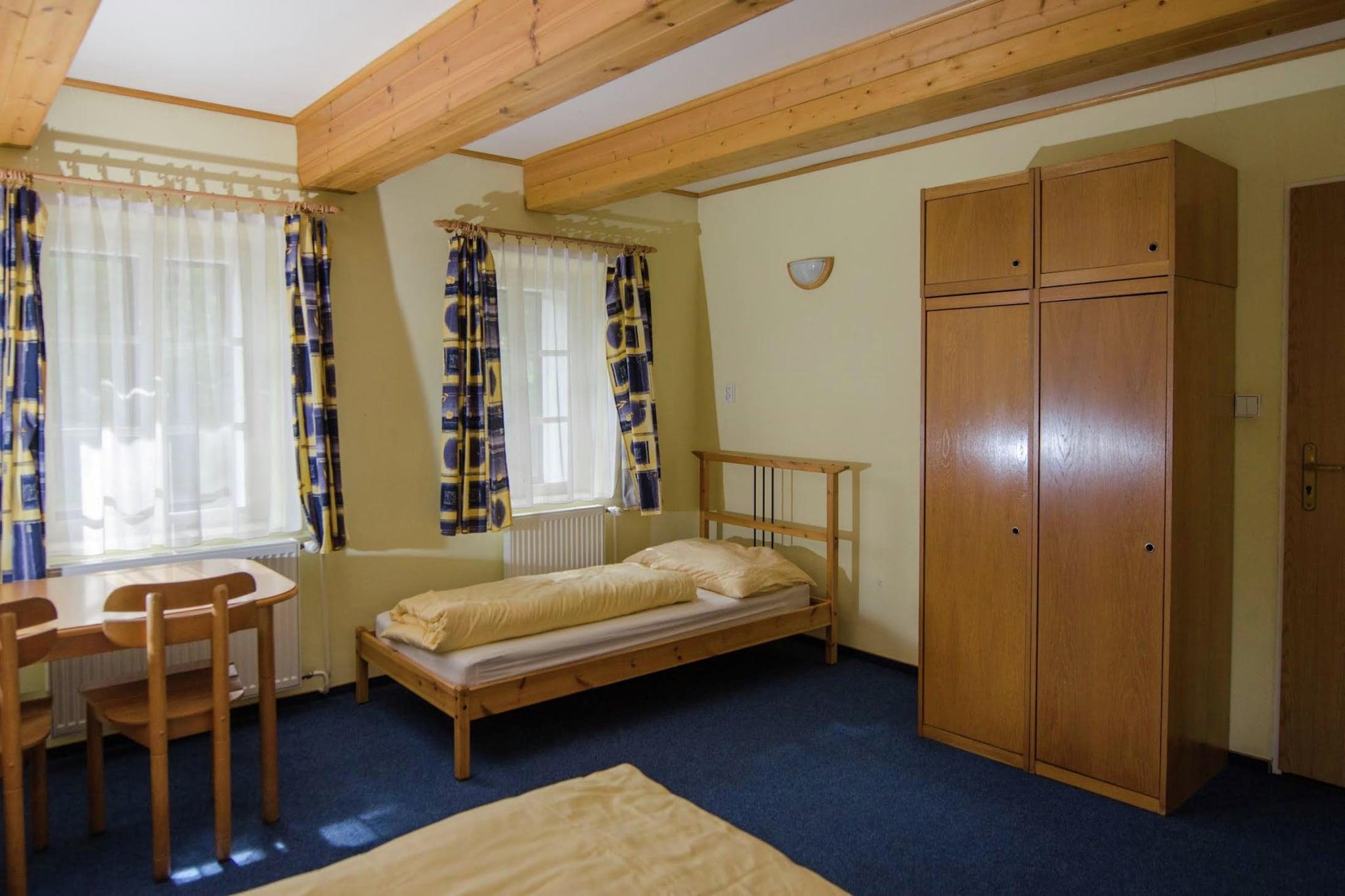 Semesterhus Vysneny Dum ligger i Giant Mountains, i hjärtat av Krkonose naturområde. Detta stora, fristående fritidshus är perfekt för en semester med flera familjer eller en grupp vänner. Det gemensamma rummet på bottenvåningen är ett trevligt ställe att spela ett spel, titta på en film eller njuta av en måltid tillsammans. Det rymliga köket är fullt utrustat för att laga mat till en stor grupp. På soliga dagar är trädgården en härlig plats att sitta och koppla av. Det finns flera terrasser, en lägereldsborrning och det finns en lekredskap för barnen. Det finns också en liten pool över havet för att svalna. Detta fritidshus i den lugna byn Javornik ligger i en underbar omgivning. Naturentusiaster kommer att älska det här eftersom det finns gott om magnifika promenader i området. Och de närliggande städerna Vrchlabi och Trutnov har några fina terrasser. Bra ställen att njuta av en tjeckisk öl på en solig dag - du är ju på semester! Det finns gott om att göra här på vintern också. Skidområdena Cerna Hora (Janske Lazne), Cerny Dul och Mlade Bukys pister ligger alla inom 12 km. De erbjuder ett stort utbud av skidåkning, både för nybörjare och mer avancerade skidåkare.