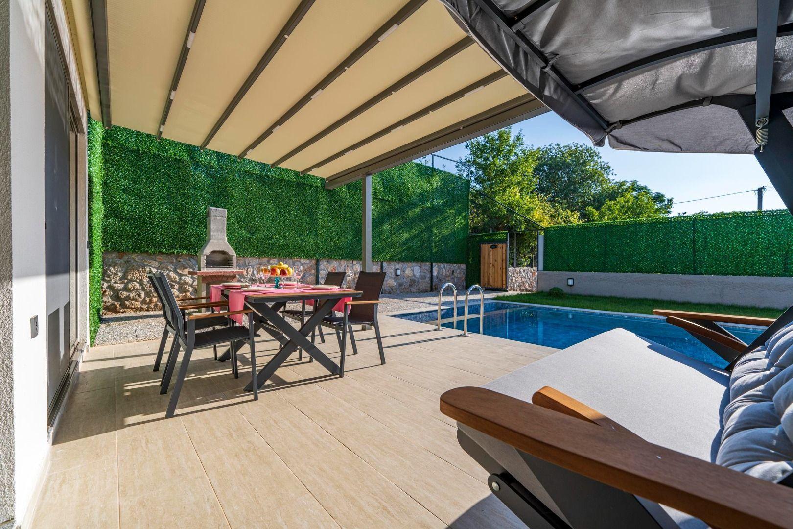 Inside, guests will find a fully equipped residence designed to fulfil all needs during their stay. The villa has two comfortable bedrooms and two bathrooms, providing a pleasant environment for up to four people. Amenities also include a washing machine, coffee machine, kettle and dishwasher to make everyday life easier. The air conditioning, which is available throughout the villa, also provides welcome cooling on hot days.