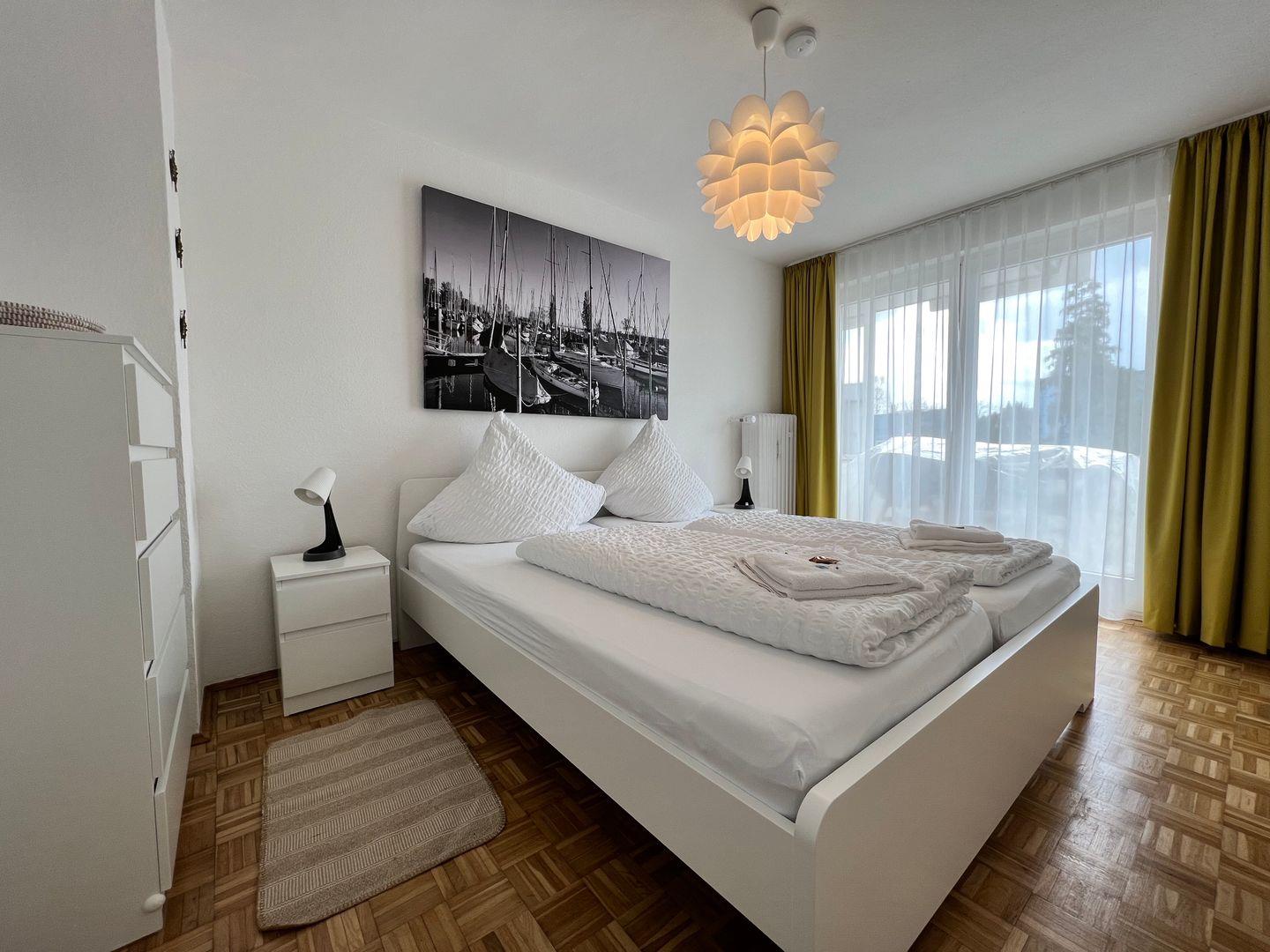 In der Ferienwohnung an der Bodenseetherme stehen insgesamt zwei großzügige Schlafzimmer sowie eine weitere Schlafmöglichkeit im Wohn- und Essbereich zur Verfügung. In beiden Schlafzimmern stehen bequeme Doppelbetten (180 x 200 cm) für einen erholsamen Schlaf und ausreichend Stauraum für Ihr Gepäck bereit. Neu renoviert und liebevoll gestaltet, präsentiert sich diese Ferienwohnung mit hochwertiger Ausstattung im gemütlichen Landhausstil. Möbel im Landhausstil und liebevolle Details geben ein besonderes Gefühl von Wärme und Behaglichkeit. Es erwartet Sie eine Wohlfühl-Wohnatmosphäre bei der Altes liebevoll erhalten und mit moderner Technik vereint wurde.