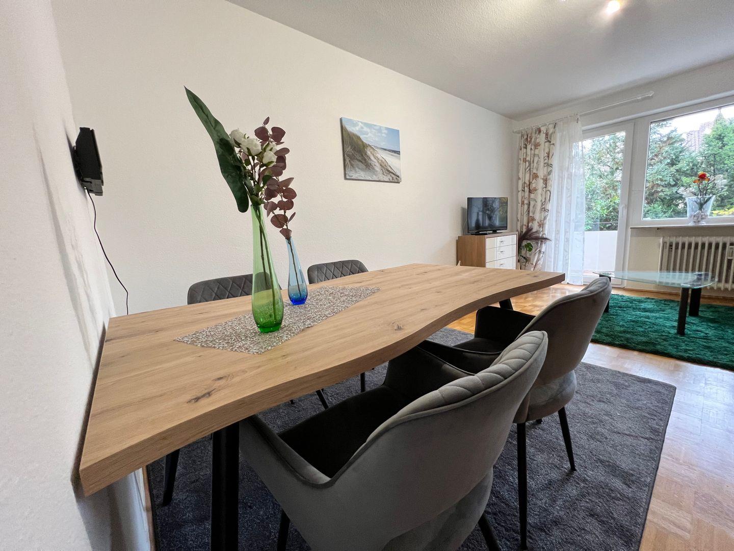 Der gemütliche Balkon, direkt vom Wohnzimmer aus betretbar, lädt zu entspannten Momenten im Freien ein. Die Wohnung bietet kostenfreien WLAN-Zugang. Das Wohnzimmer ist mit einer ausziehbaren Couch, einem Flachbild-TV und einer Essgruppe für bis zu vier Personen ausgestattet. Die separate Küche in ansprechender Holzoptik verfügt über eine Vollausstattung, um Ihren Aufenthalt so angenehm wie möglich zu gestalten.