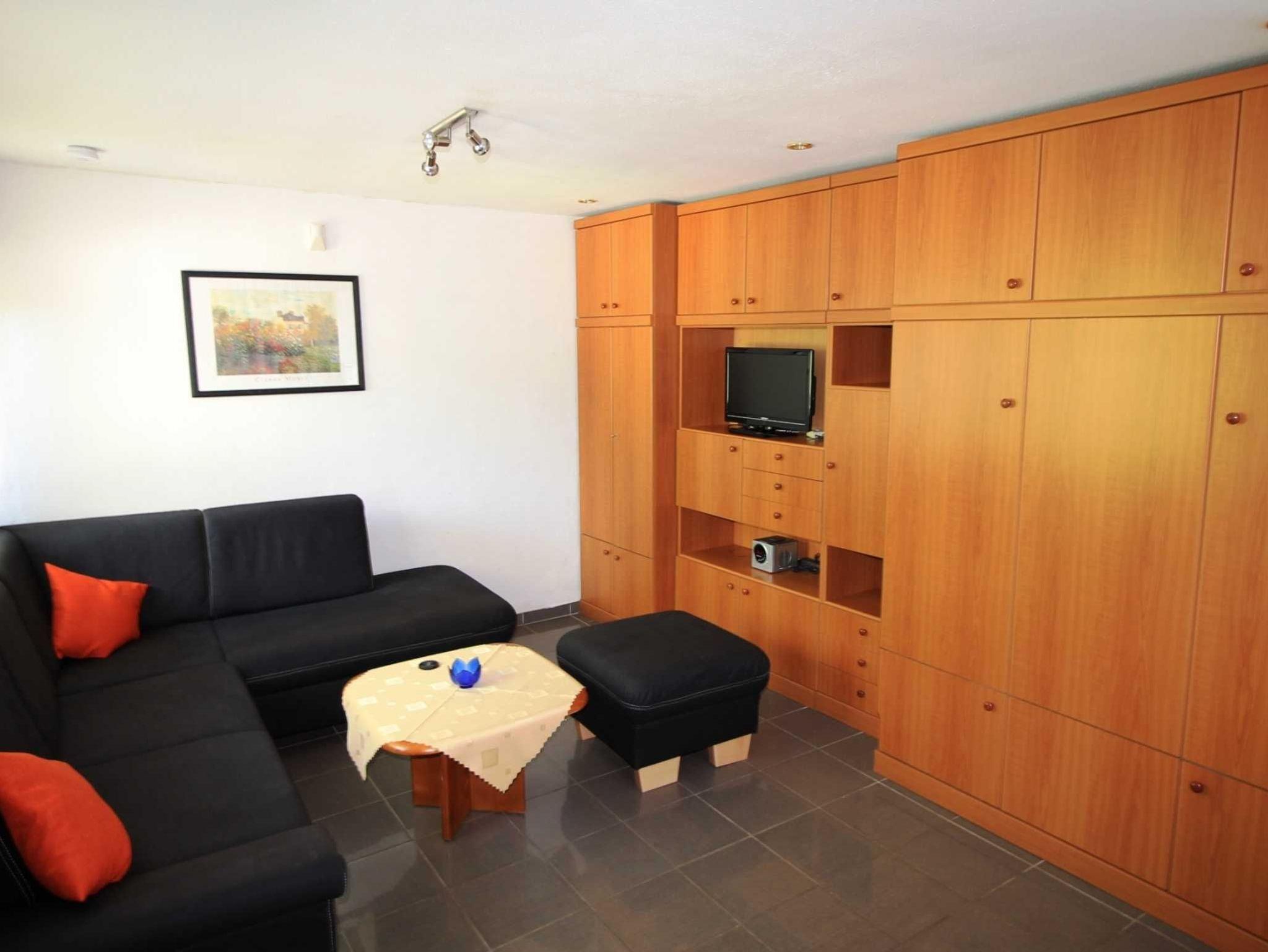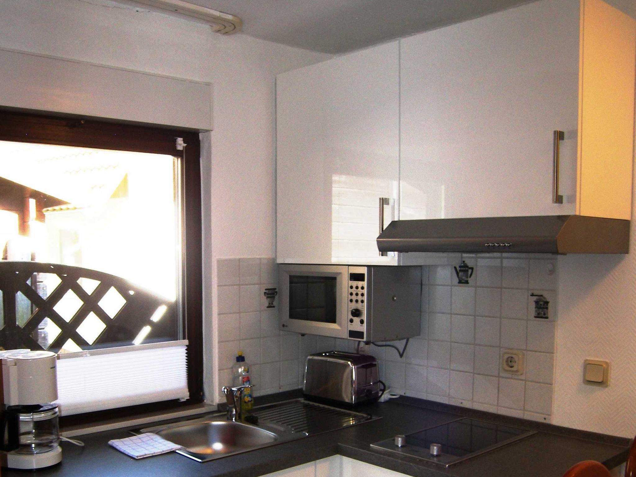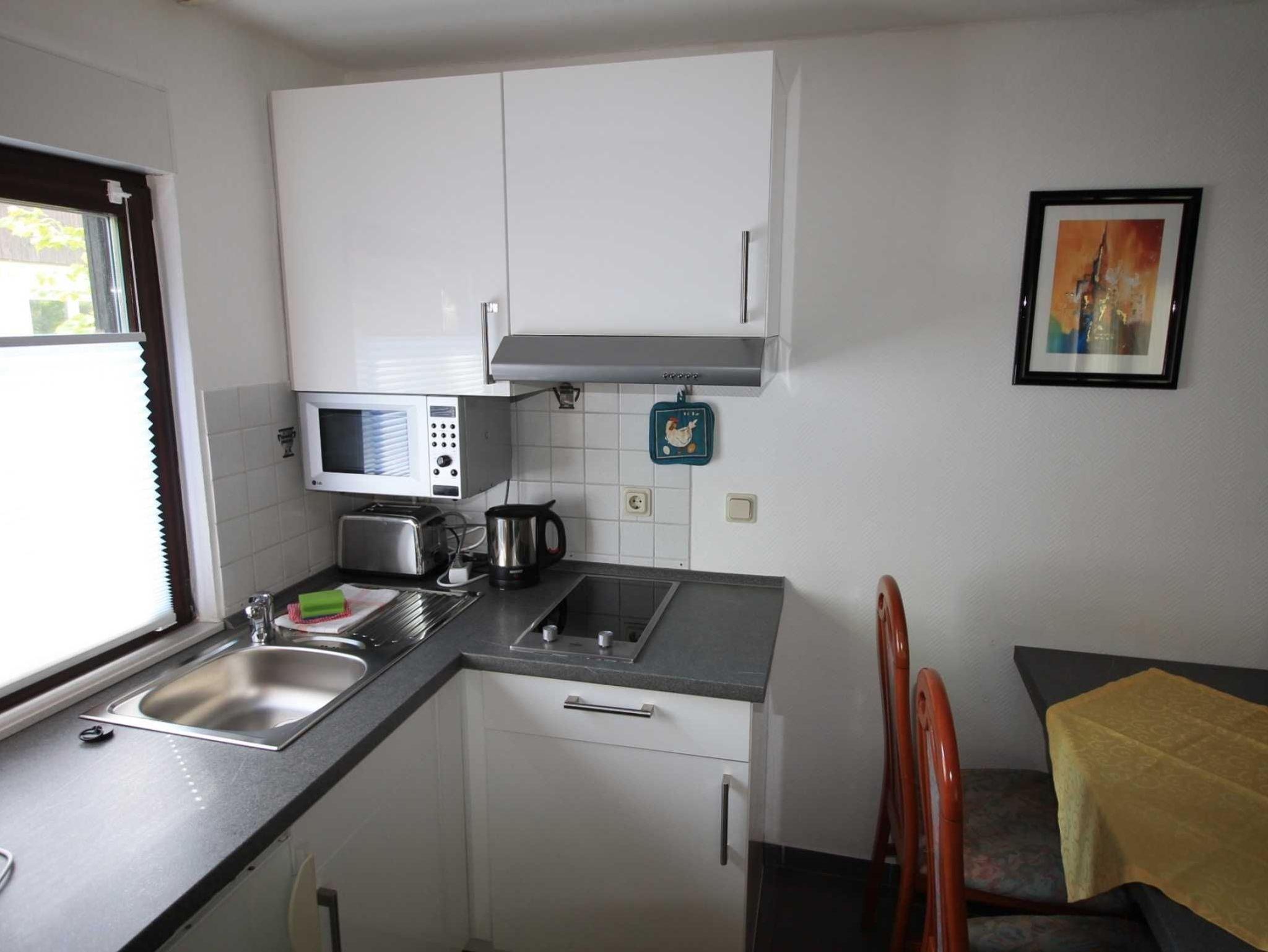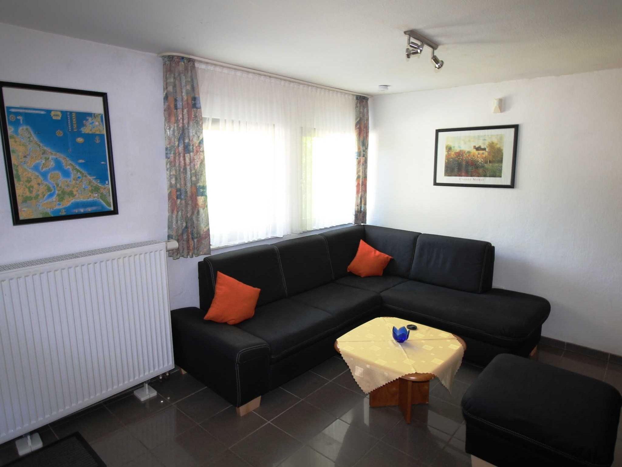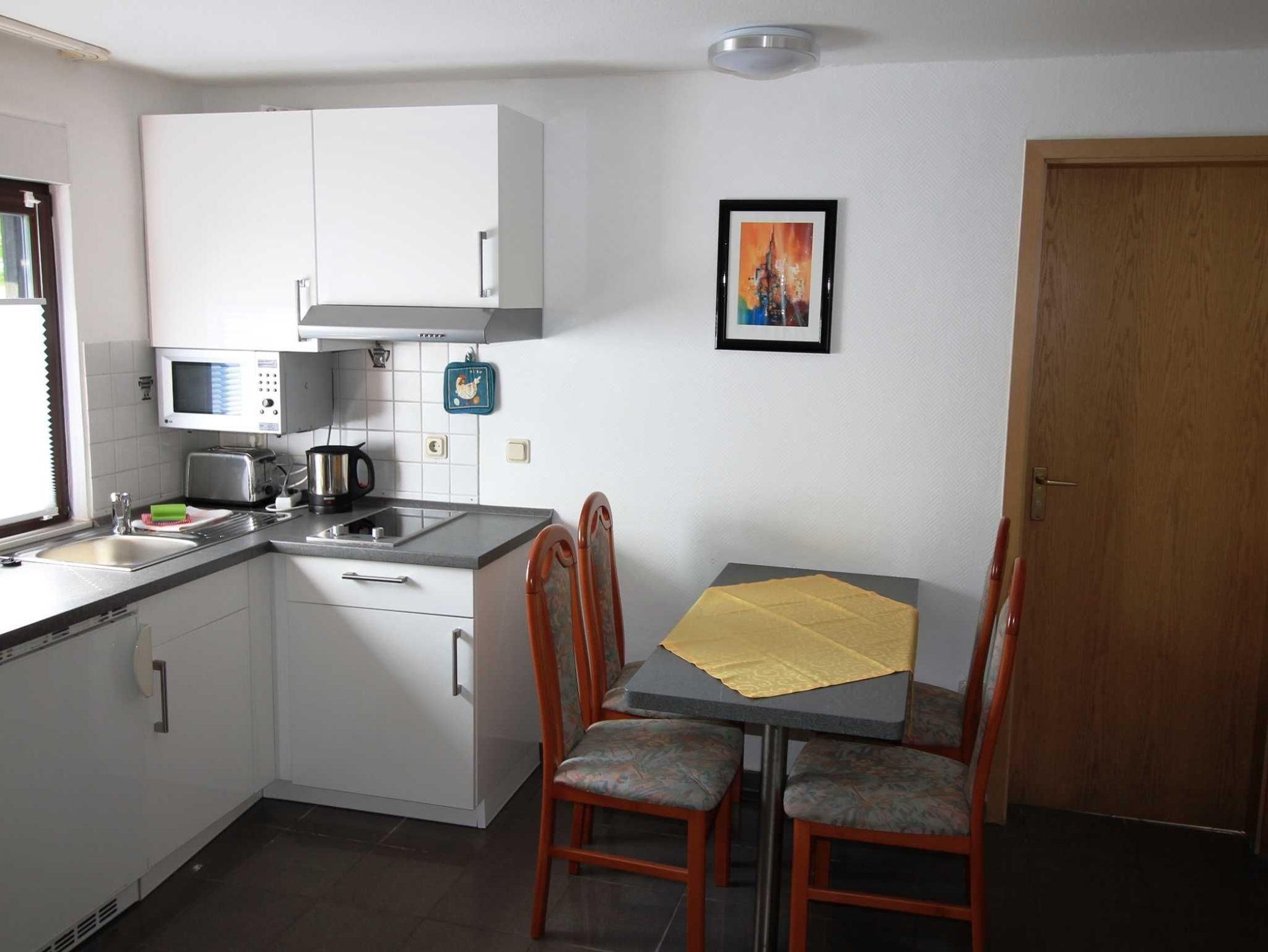 Sie wohnen in einer gemütlichen, ca. 28 m² großen Erdgeschosswohnung in moderner Ausstattung im Nebengebäude. Die Wohnung ist ideal für 2 Personen geeignet. Zum Schlafen haben Sie ein gemütliches Schrankbett (1,40 x 2,00 m) außerdem haben Sie noch die Möglichkeit auf der Schlafcouch zu übernachten. Zur Selbstverpflegung steht Ihnen eine Küchenzeile mit 2 Platten Kochfeld, Mikrowelle, Kühlschrank, Wasserkocher, Toaster und Kaffeemaschine zur Verfügung, sowie ein Esstisch mit Stühlen. Ein Bad ist mit einer bodengleichen Dusche und WC ausgestattet. Der direkt angrenzende Terrassenbereich eignet sich hervorragend zum Frühstücken oder zum Sonnenbaden. Die Erstausstattung Bettwäsche und Handtücher ist bereits inklusive.