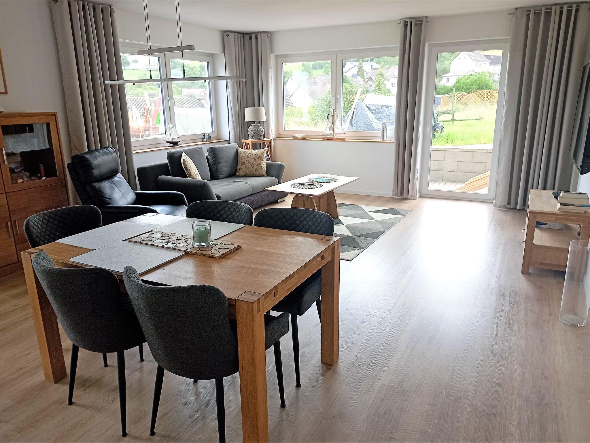 Das Ferien - Gästehaus Egger, Flurweg 1a + b, wurde 2023 neu in Trittscheid gebaut. Der moderne Neubau wurde Zukunftsorientiert mit Erdwärme, Photovoltaikanlage, Dreifachverglasung und mit dem höchsten Standart des Energieverbrauchs errichtet.