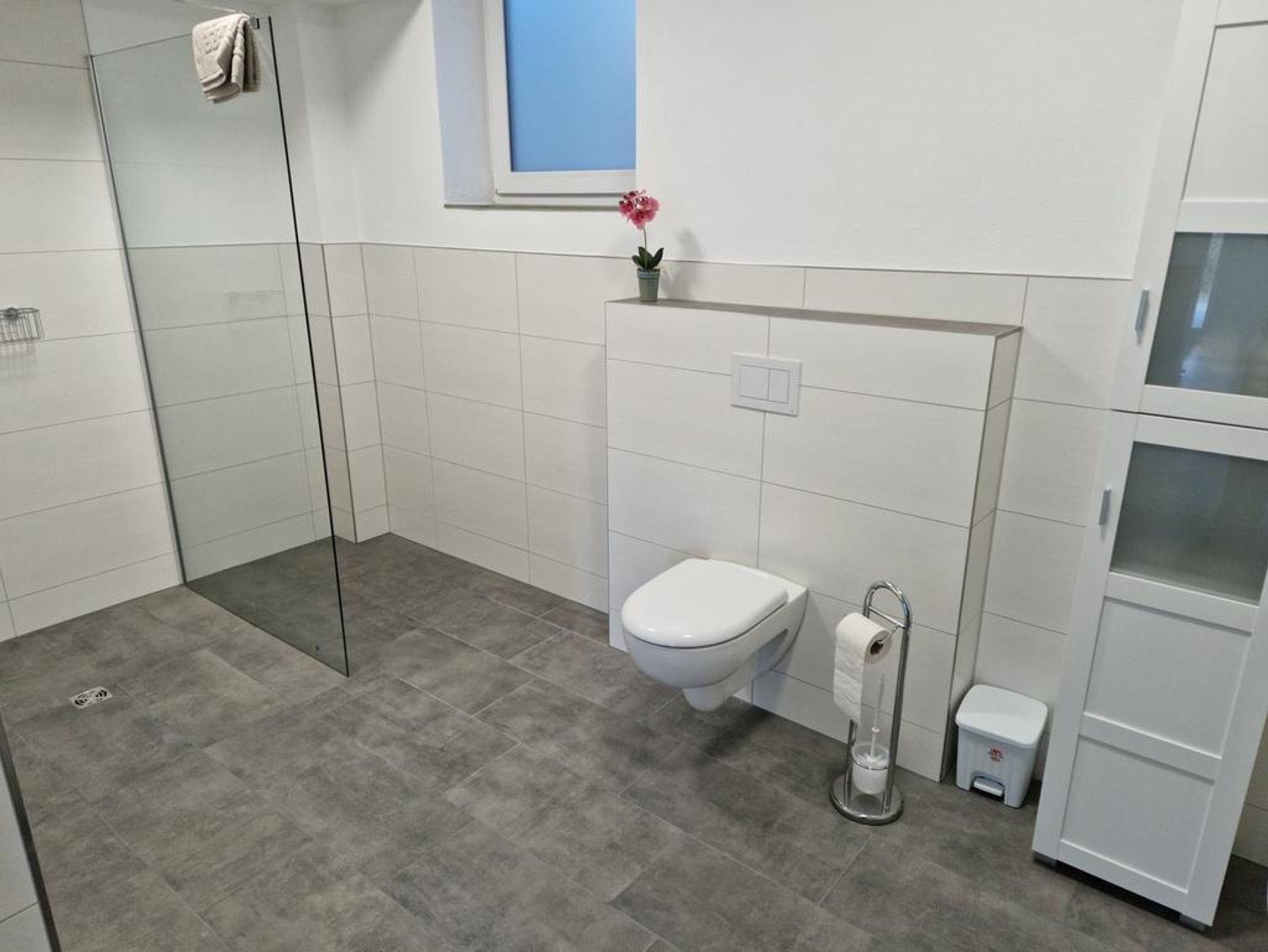 Alle Innentüren sind 1,0 m breit, großzügig gestaltetes Badezimmer mit Dusche. Auch die Terrasse ist barrierefrei begehbar / befahrbar.