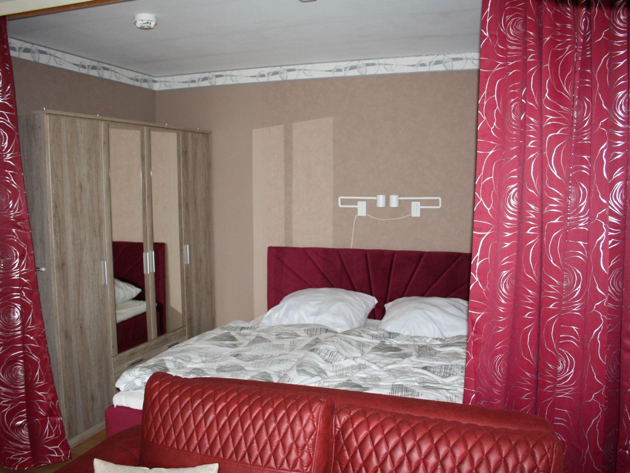 Die Katzenfreundliche Ferienwohnung im Harz verfügt über ein kombiniertes Wohn-/Schlafzimmer und ein kleines Schlafzimmer. Im Wohnbereich findet man eine 2-er-Sitzcouch, 2 Sessel, Wohnzimmerschrank, Couchtisch und ein Flachbild-TV. In der Essecke findet man einen ausziehbaren Tisch und 4 Stühle. Weiterhin steht hier ein Katzenkratzbaum. Die kleine Küche ist ausgestattet mit Cerankochfeld, Spülmaschine, Kühlschrank, Minibackofen und Mikrowelle. Der Schlafbereich mit einem Doppelbett, Kleiderschrank und Nachttisch ist durch einen Vorhang abgetrennt. In dem separaten kleinen Schlafzimmer stehen 2 rollbare Boxspringbetten (als Einzelbetten und kombinierbar) und ebenfalls ein Kleiderschrank und Nachtschrank.
