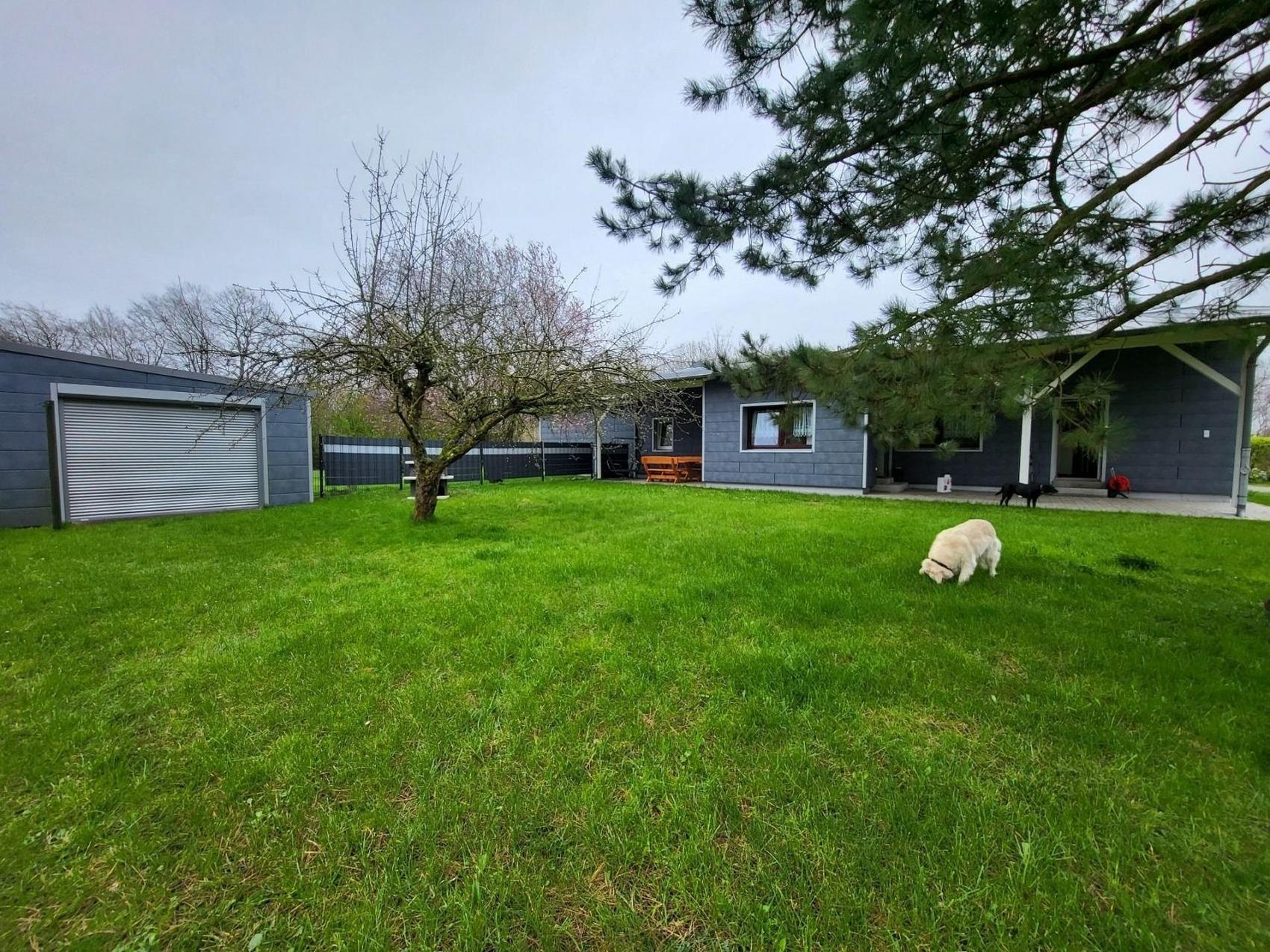 An der Ferienwohnung befindet sich ein großzügiger Garten zur Mitnutzung und eine Terrasse mit Gartenmöbeln, Grill und Sonnenschirm.